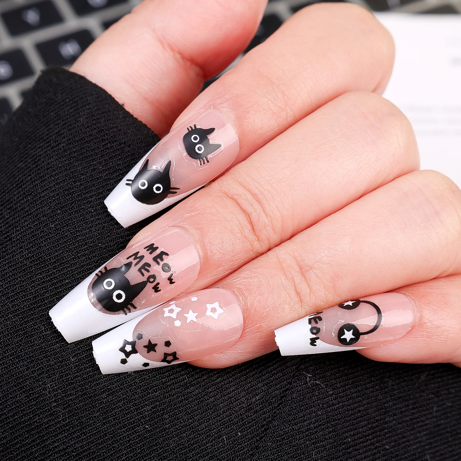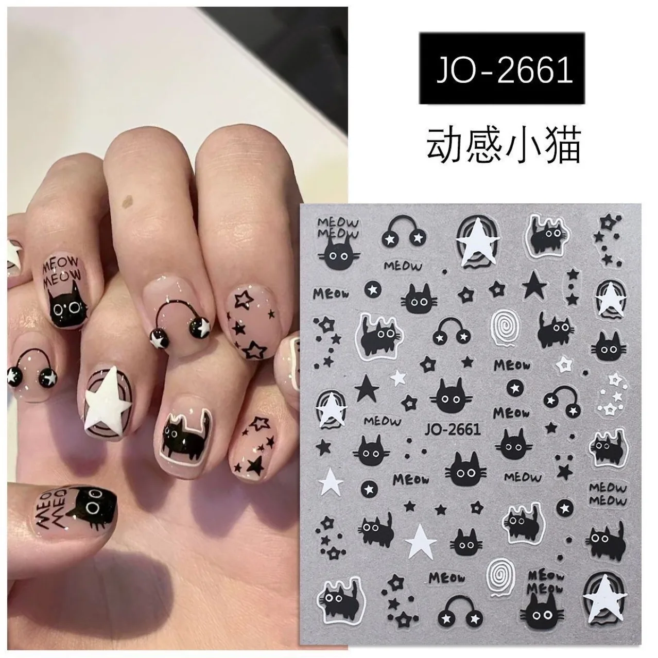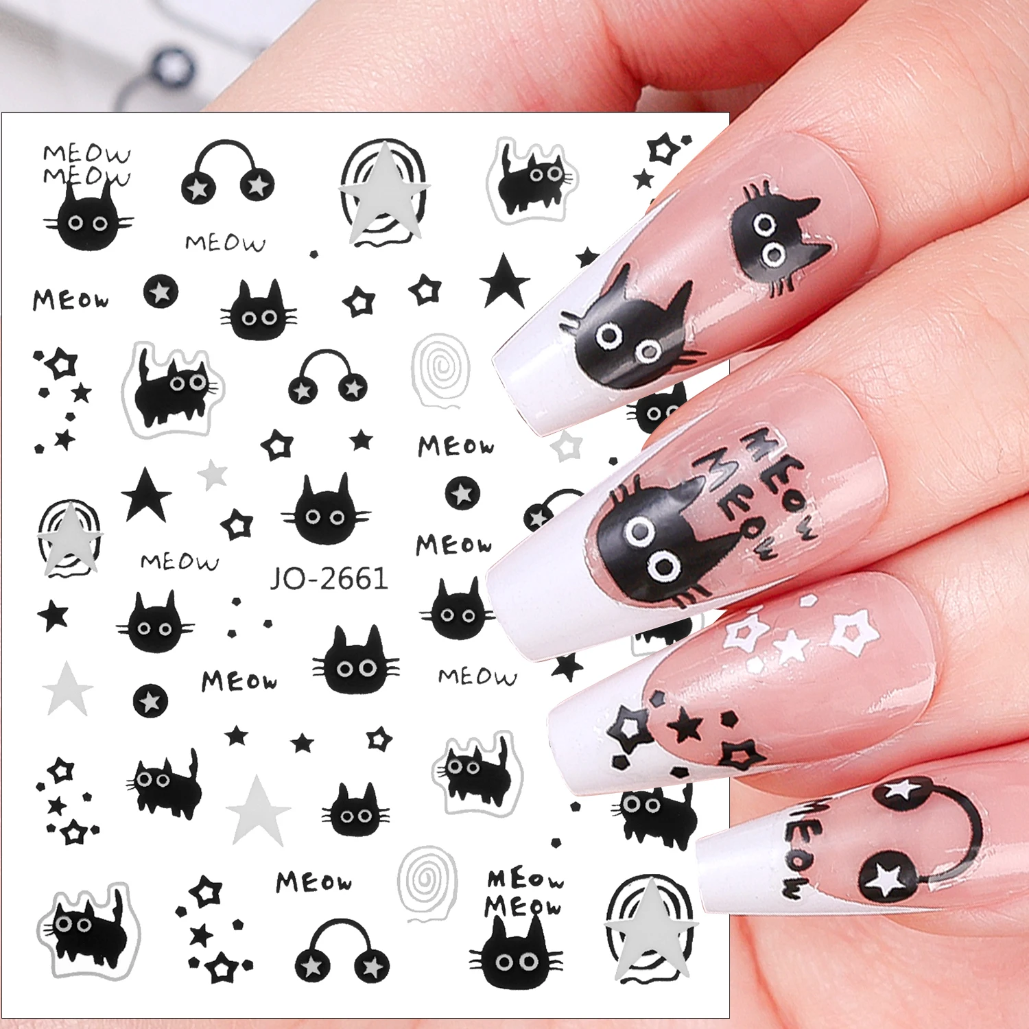 1-10PCS Y2K Black Cat Nail Stickers Kawaii Cartoon Animal Paw Sliders Nail Arts 3D Silver Stars Letters Manicure Decals Tools
