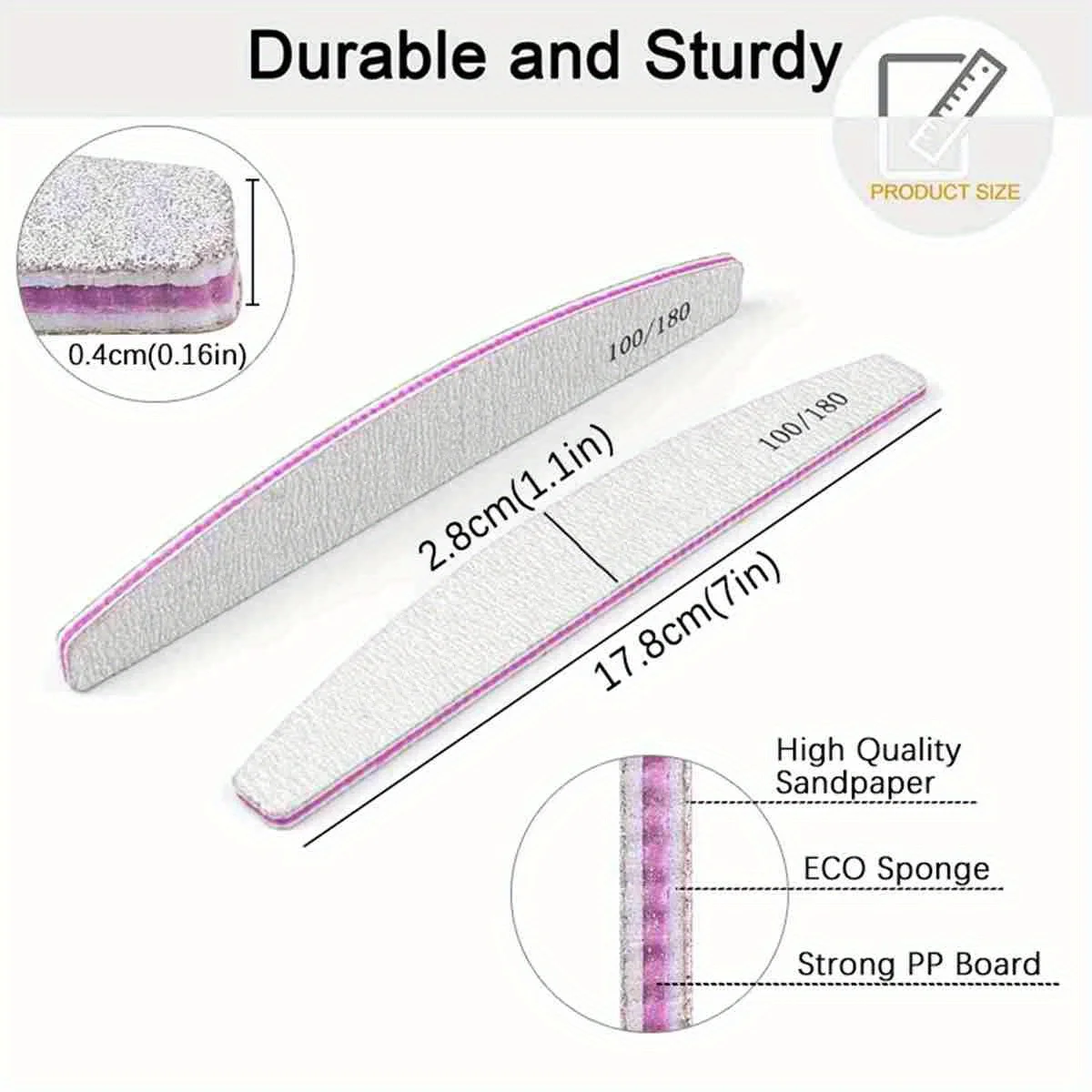 1/3/5/10Pcs Professional Nail File 80/100/150/180/240 Sandpaper Strong Thick Sanding Half Moon Lime nail accessories and Tools