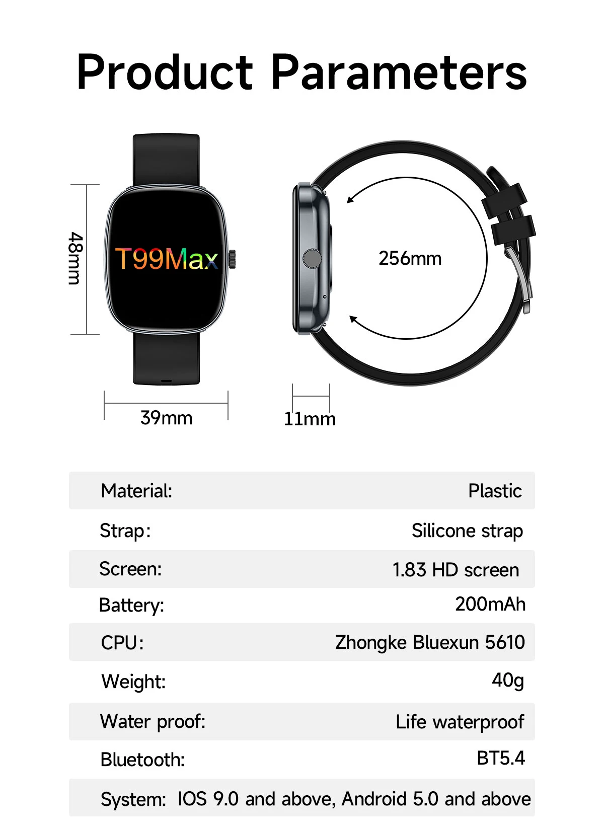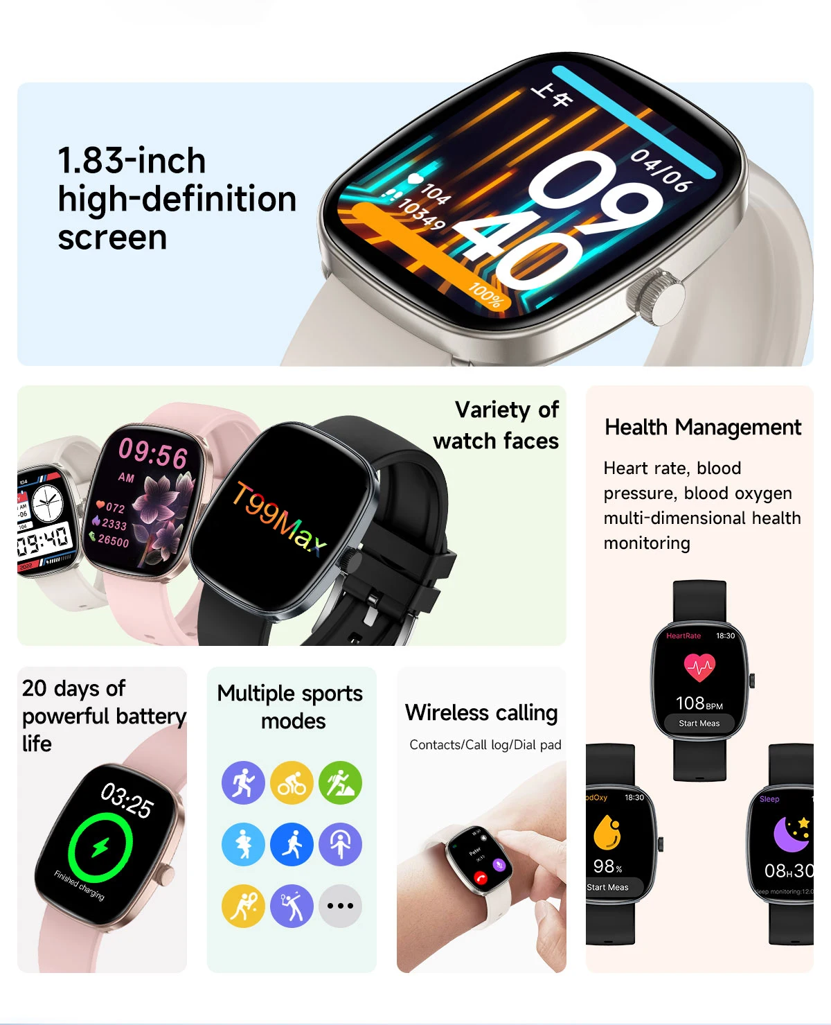 1.83'' Waterproof Smart Watch with Message Answer Call Sleep Monitoring Sports Pedometer Information Alerts for IPhone Android