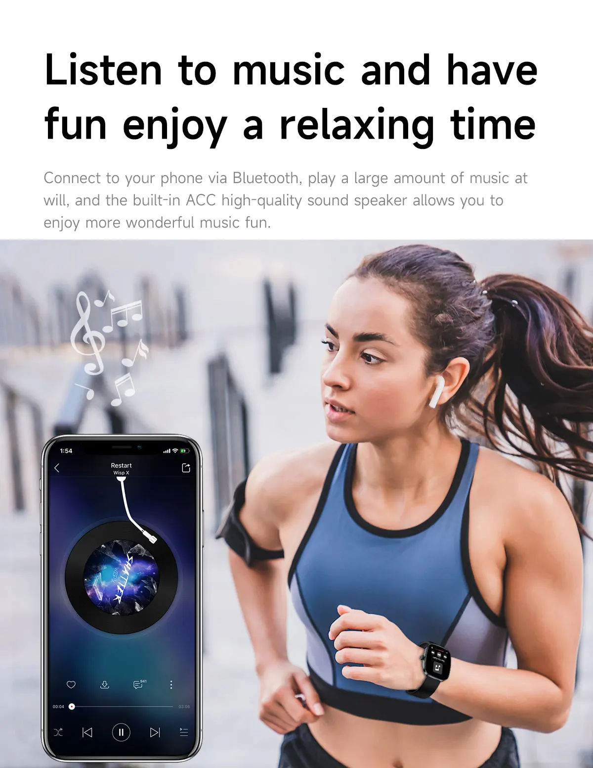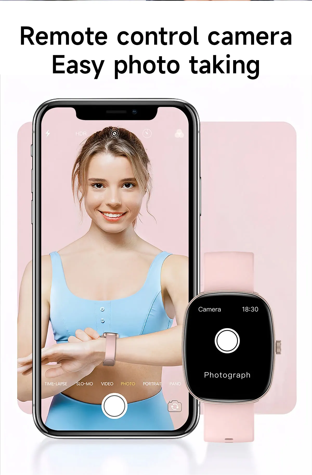 Custom wallpaper, Bluetooth call, music control, social APP message reminder, incoming call reminder, SMS reminder, multi exercise, alarm clock reminder, sedentary reminder, search for mobile phone, music playback, stopwatch, step counting, distance, calories, sleep monitoring, heart rate Monitoring, blood pressure, blood oxygen, searching equipment, language switching, and raising your hand to brighten the screen.