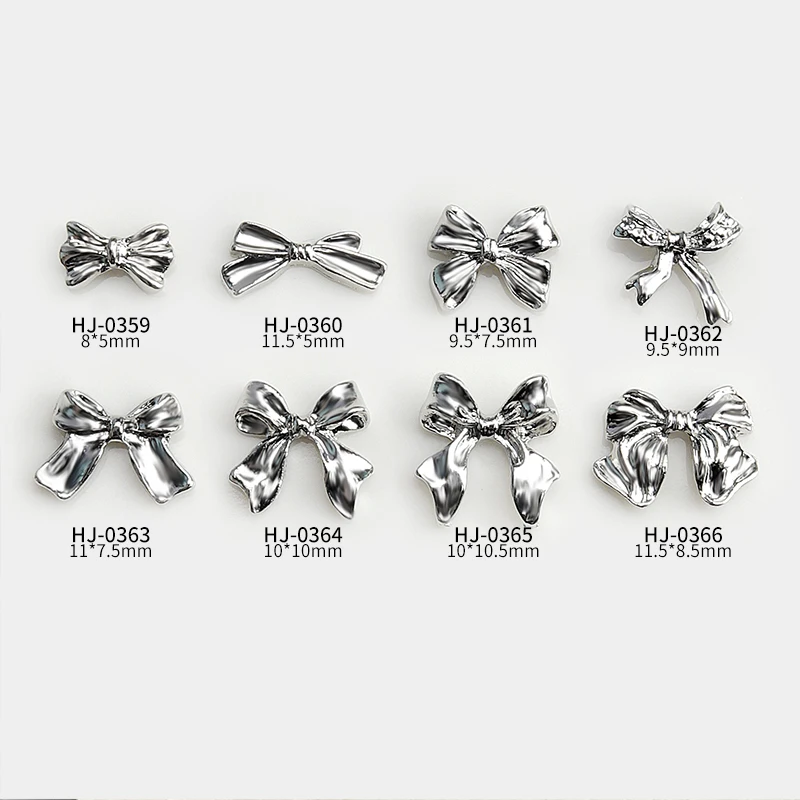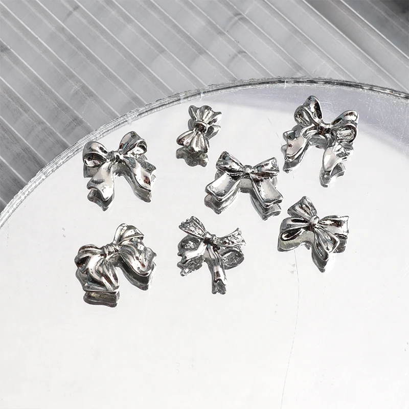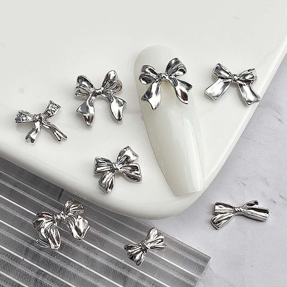 10 pcs Silver Alloy Ribbon Butterfly Nail Art Charm 3D Metal Bowtie Nails Art Decoration Jewelry Manicure Accessories Supplies