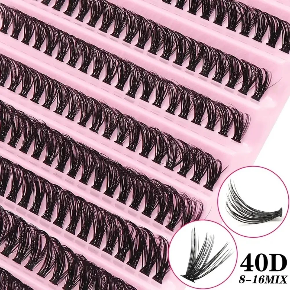 10 Rows Cluster Lashes Individual 40D Thickness Mixed Length 8-16mm D Curl Natural&Anime Look Individual Lash Clusters 3D Effect