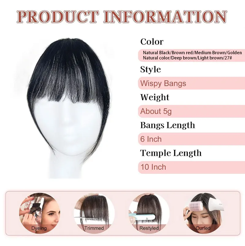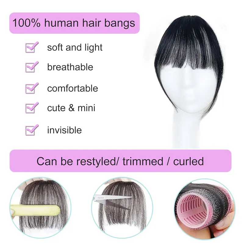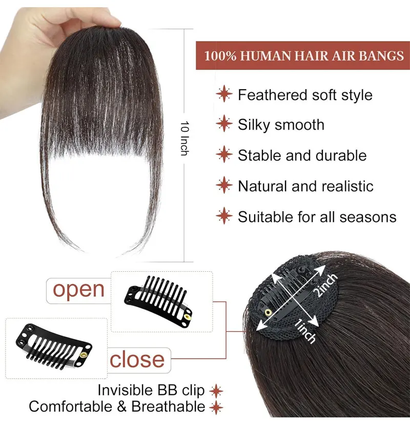 100% Human Hair Invisible Air Bangs Hair Clip-In Extension Front Fringes Hair Pieces Air Bangs Styling Accessorie for Women