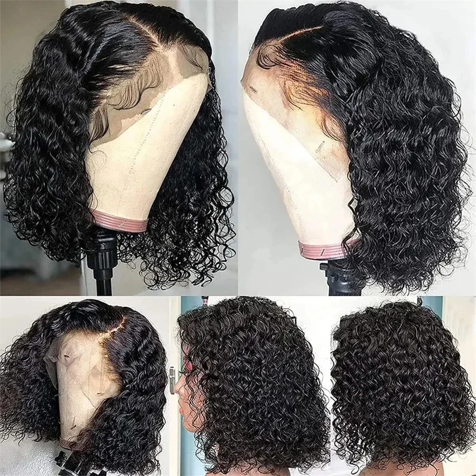 100% Human Hair Loose Deep Wave Short Bob wigs Human Hair 13x4 Transparent Lace Front Wig 16 Inches 200 Density Vietnamese wig