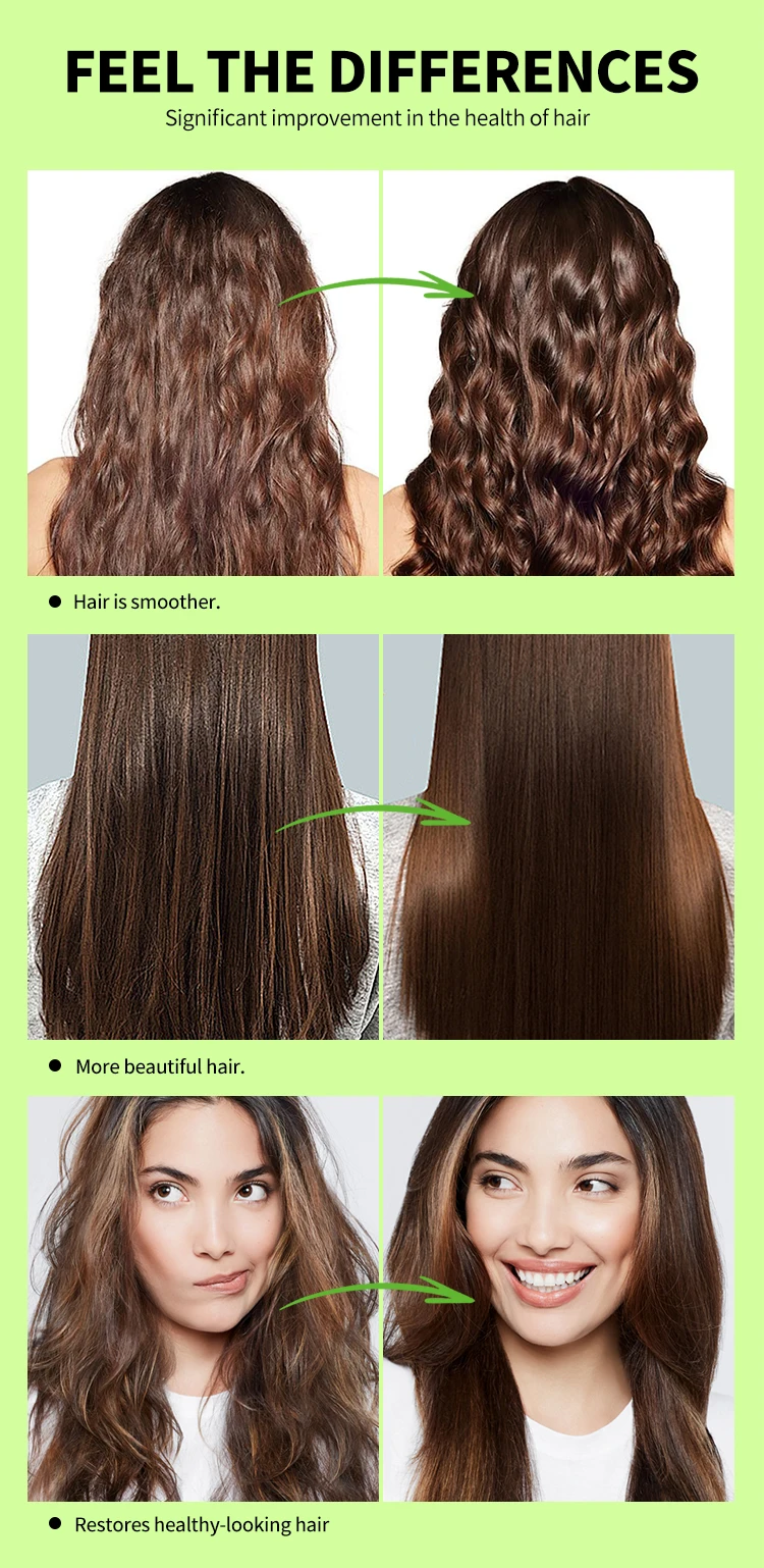 Deeply repair external damage,restoring hair's strength and reducing the troubles of hair breakage andsplit ends.