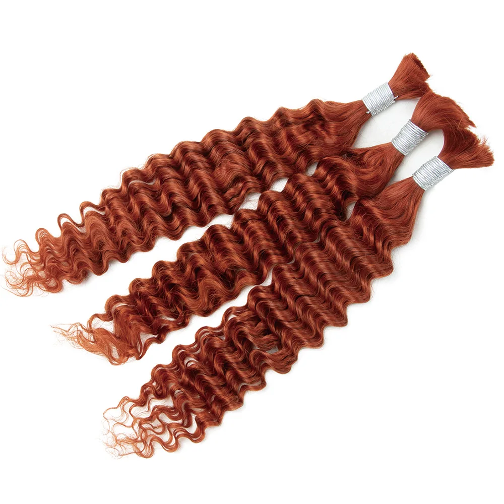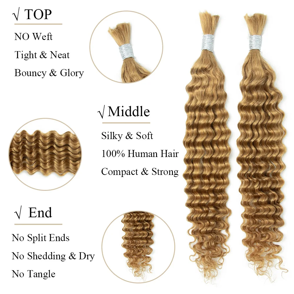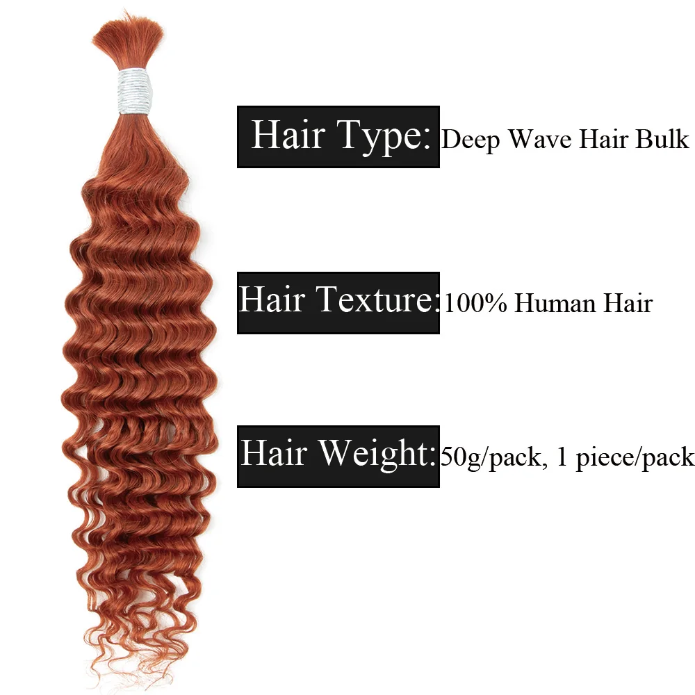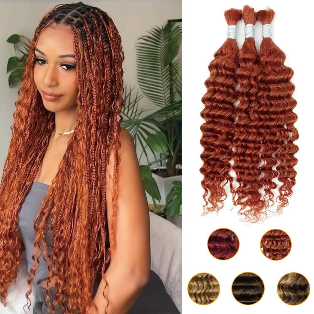 14-22'' Brown Deep Wave Human Hair Bulk For Braiding Highlights Brown No Weft Human Hair Bundles Women Boho Braids Braiding Hair