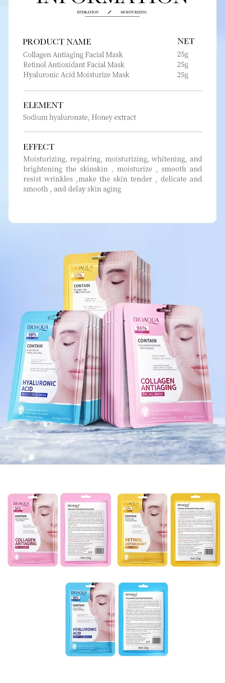 10pcs BIOAQUA Retinol Collagen Anti Wrinkle Facial Masks Moisturizing Anti-aging whitening Face Mask Facial Skin Care Products