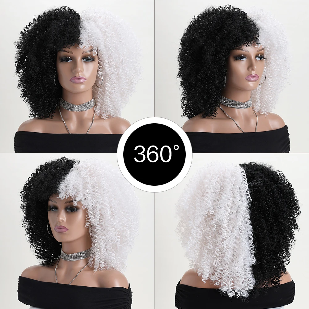 16 Inch Afro Kinky Curly Synthetic Hair Gradient Purple Wigs With Bangs Soft Fluffy Fiber Wigs For Party Cosplay Daily Use