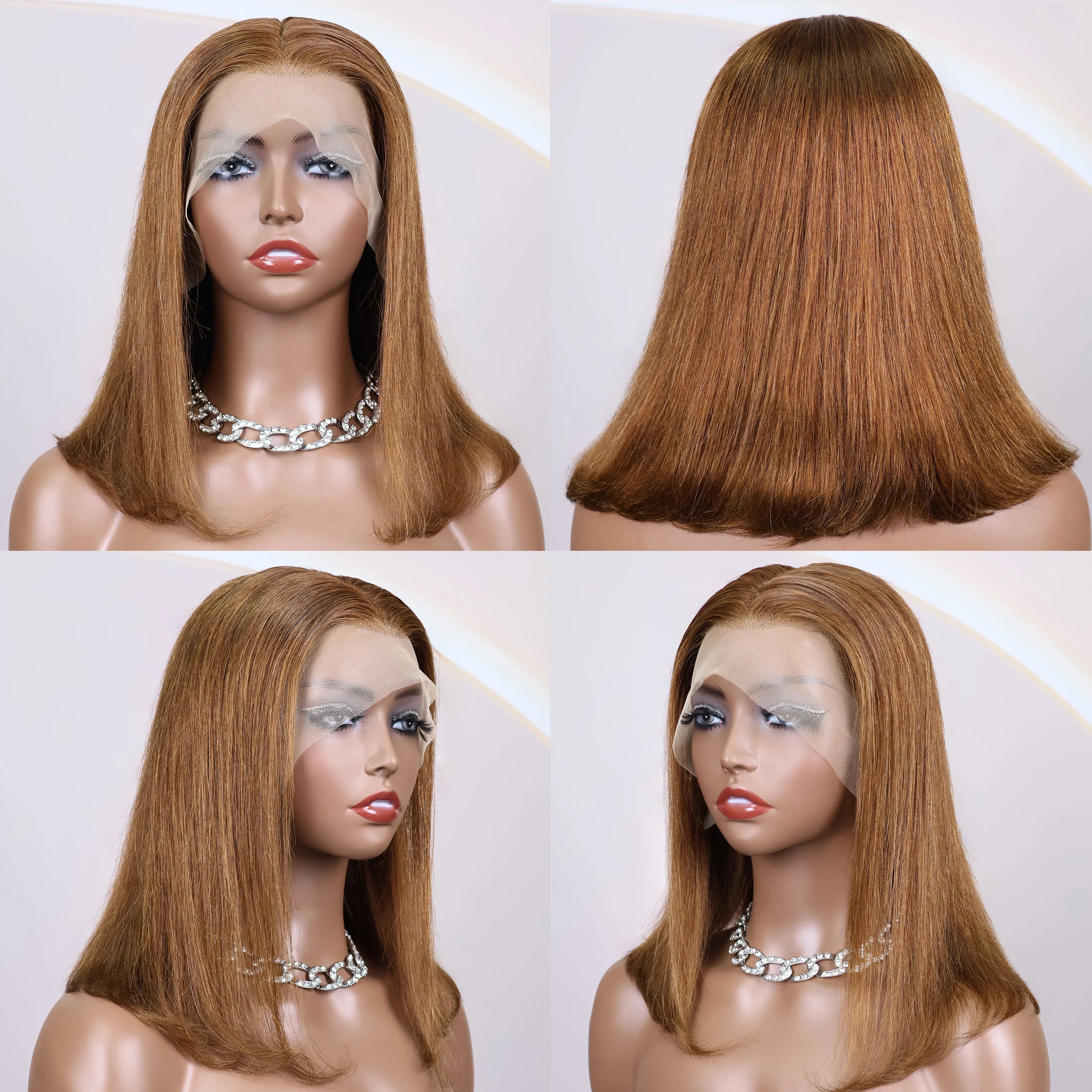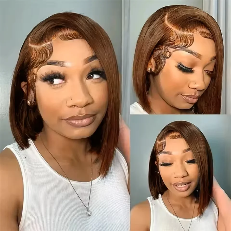 16Inch Chocolate Brown Straight Bob Wig 13X4 Lace Frontal Wig Natural Hairline Lace Front Short Wig Human Hair 100% Pre Plucked