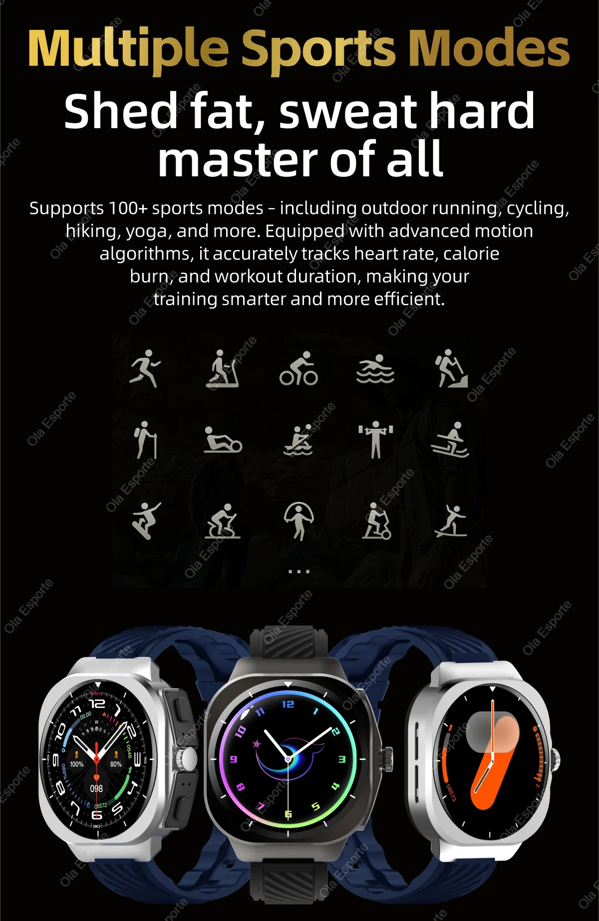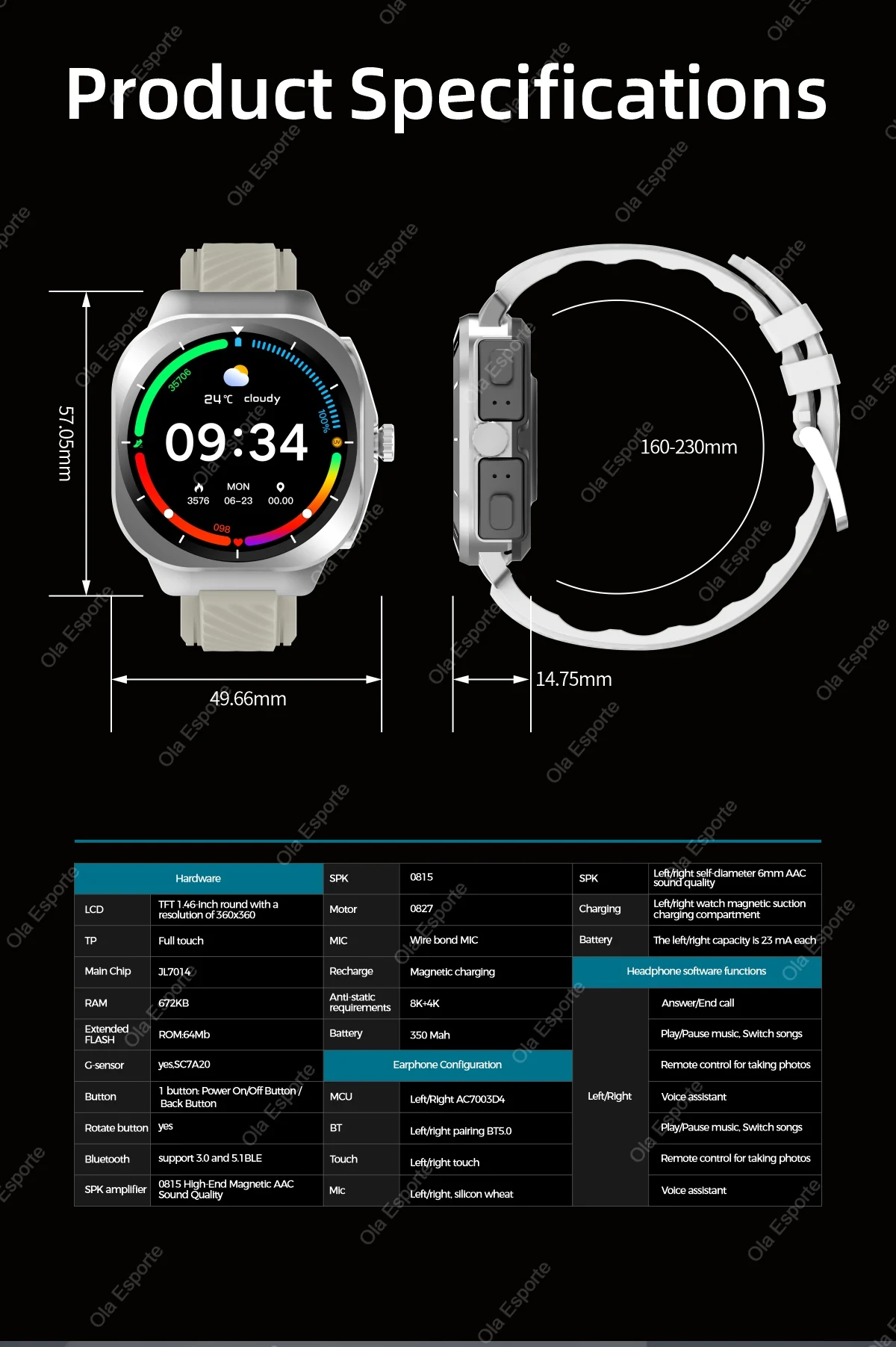 Intelligent reminder and voice control: With functions such as intelligent reminder and voice control, it makes your life more convenient. For example, it can vibrate to remind you when there are incoming calls, text messages, or social media notifications, and the watch can be operated through voice control.