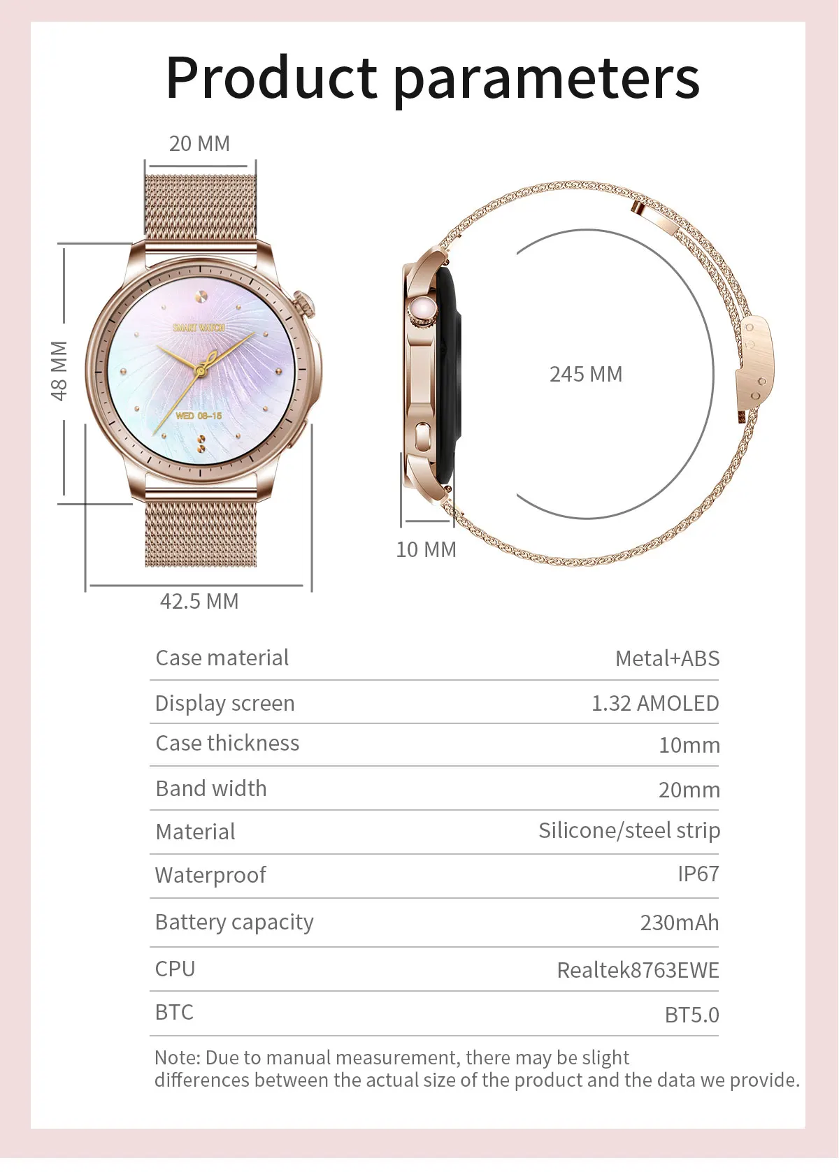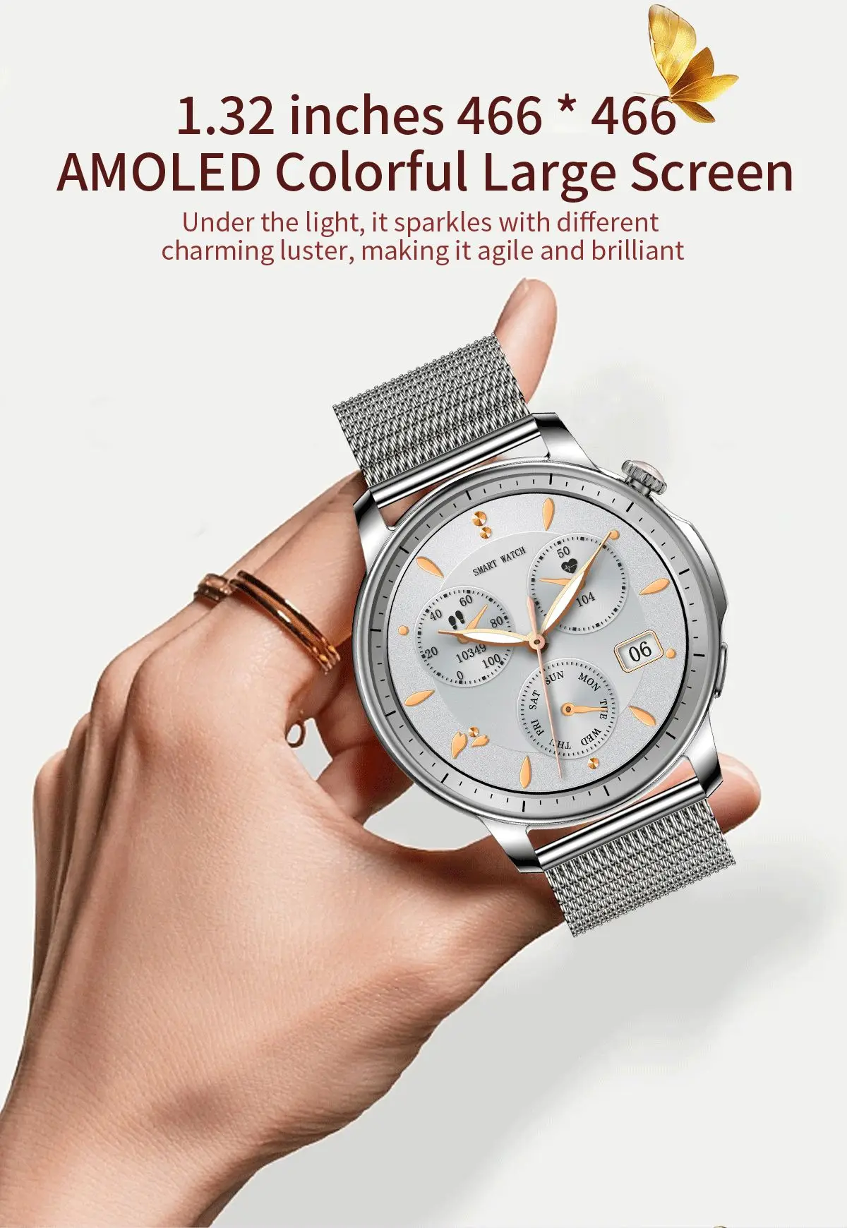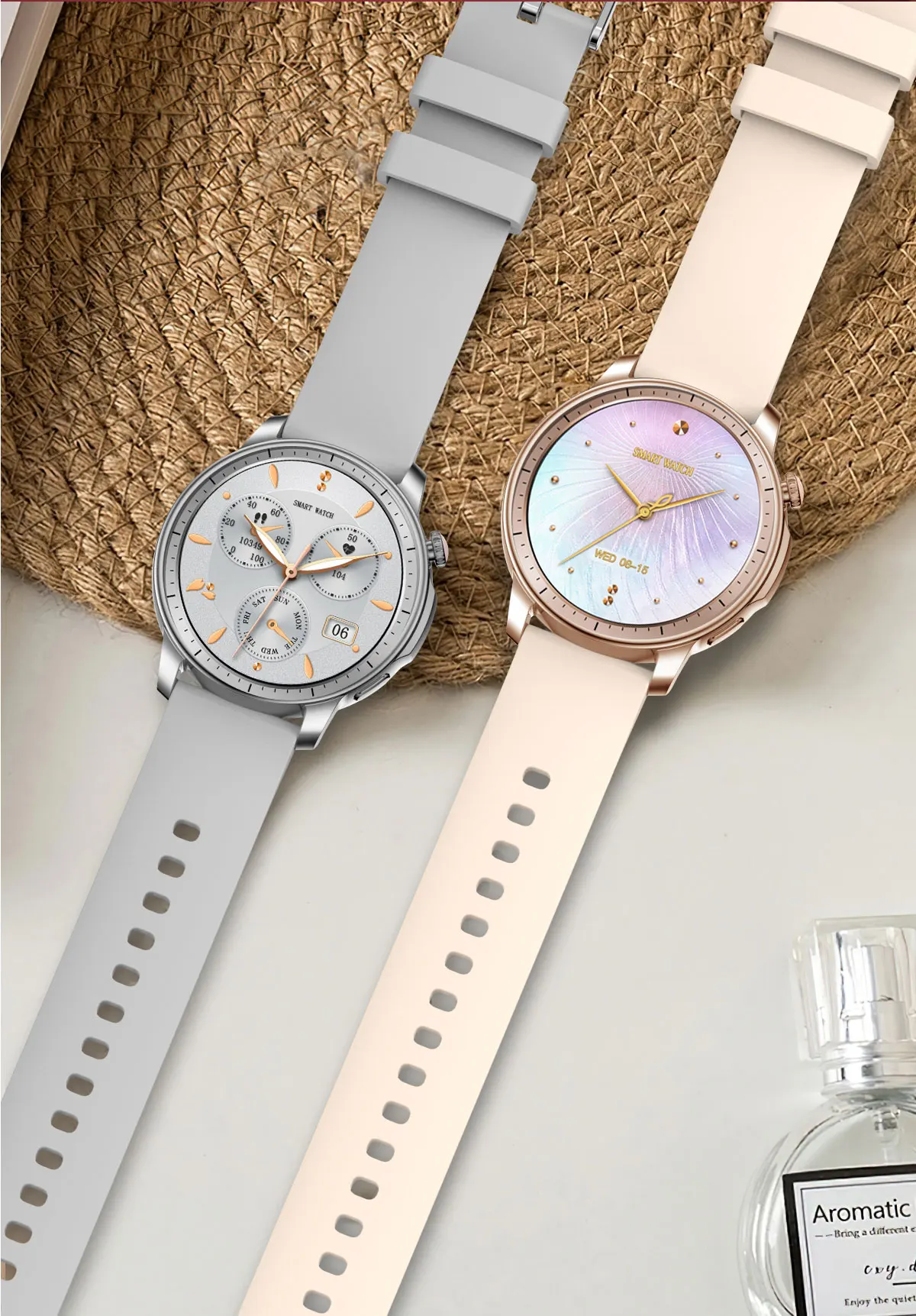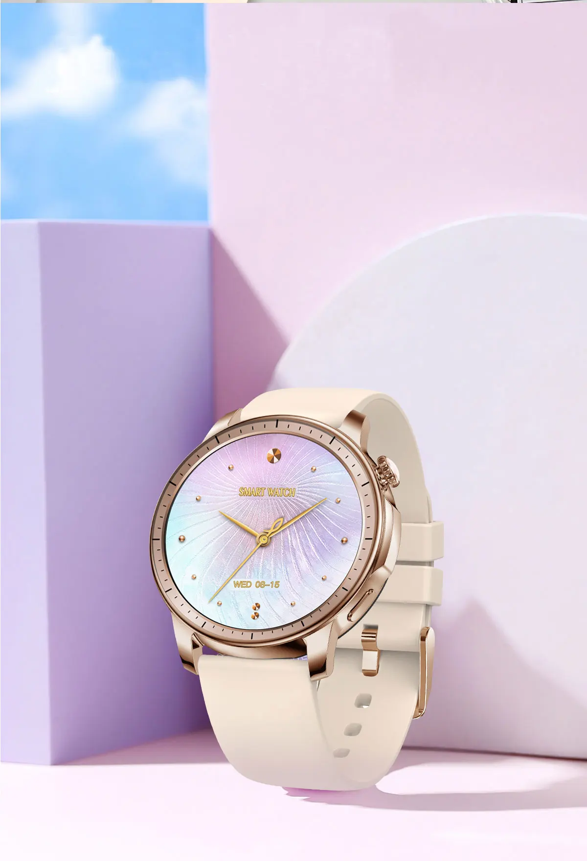 1. Introducing V65, a flagship smartwatch specially crafted for modern women. Our custom 1.32-inch AMOLED display delivers vivid colors and crystal-clear clarity, bringing your watch interface to life and experiencing the epitome of technological elegance.