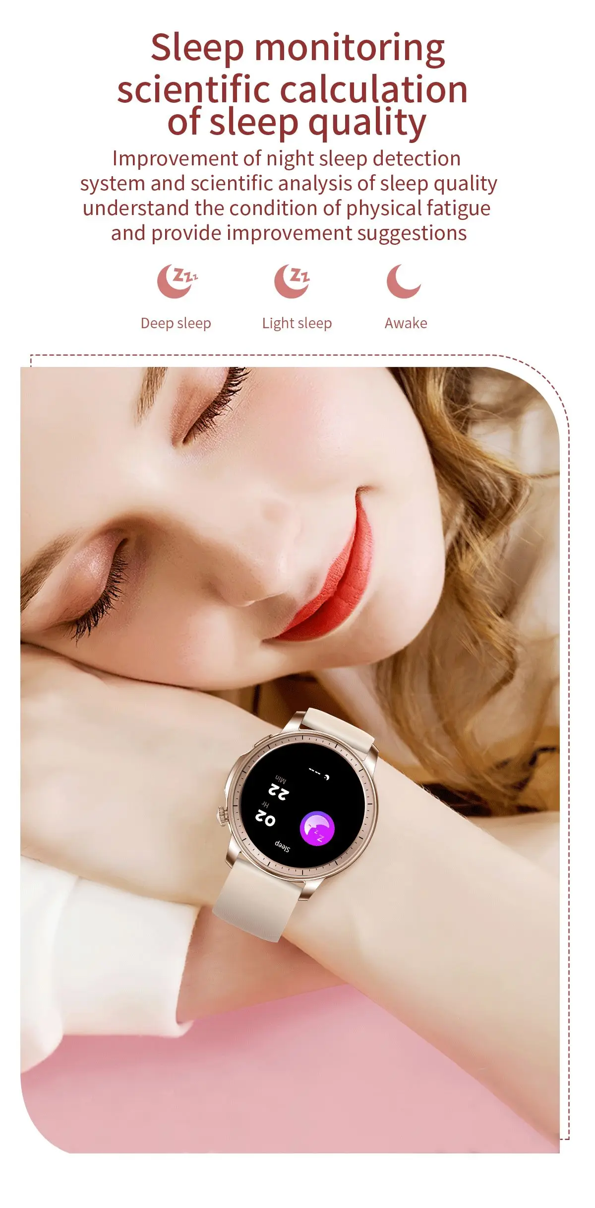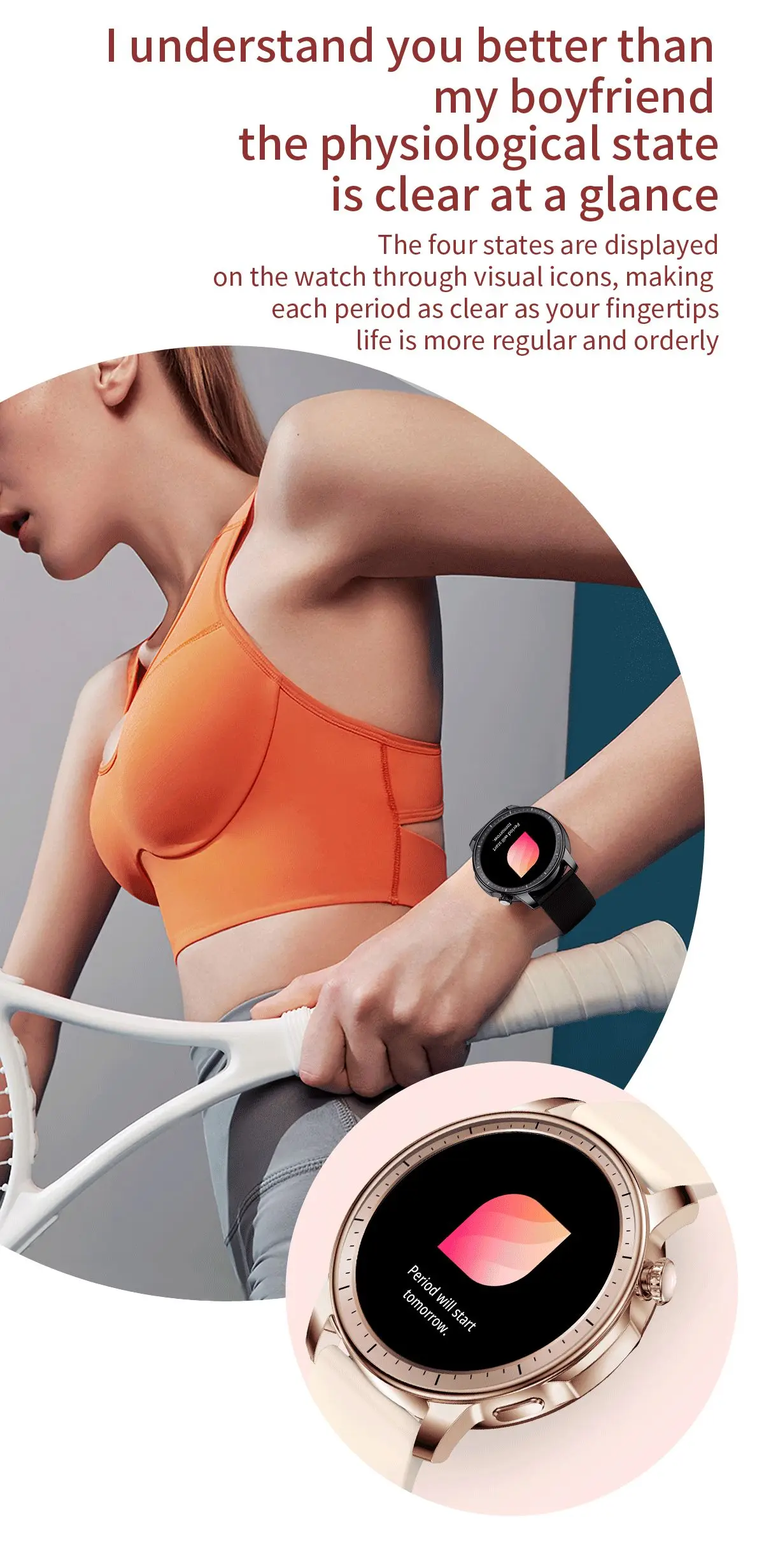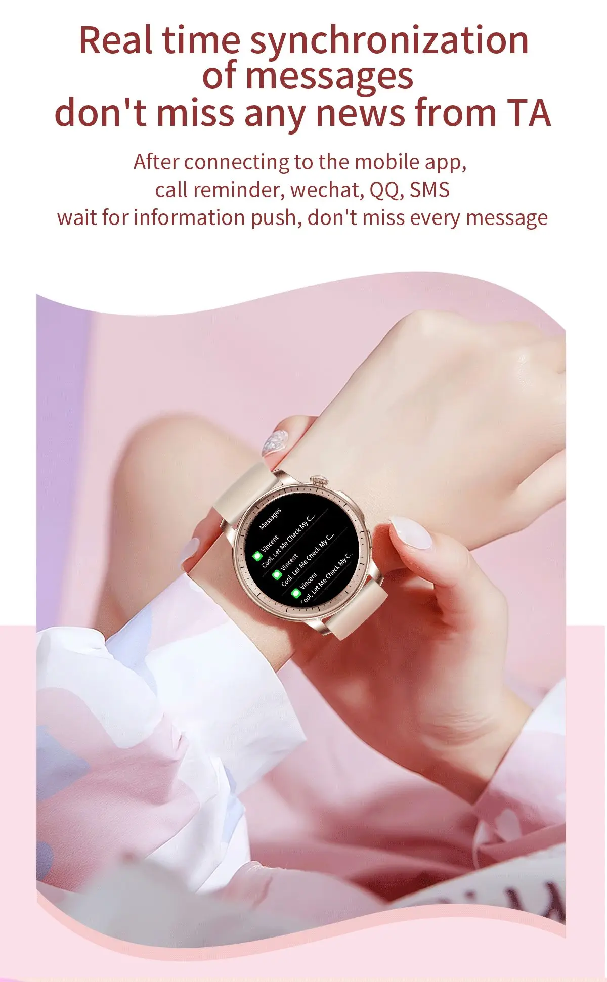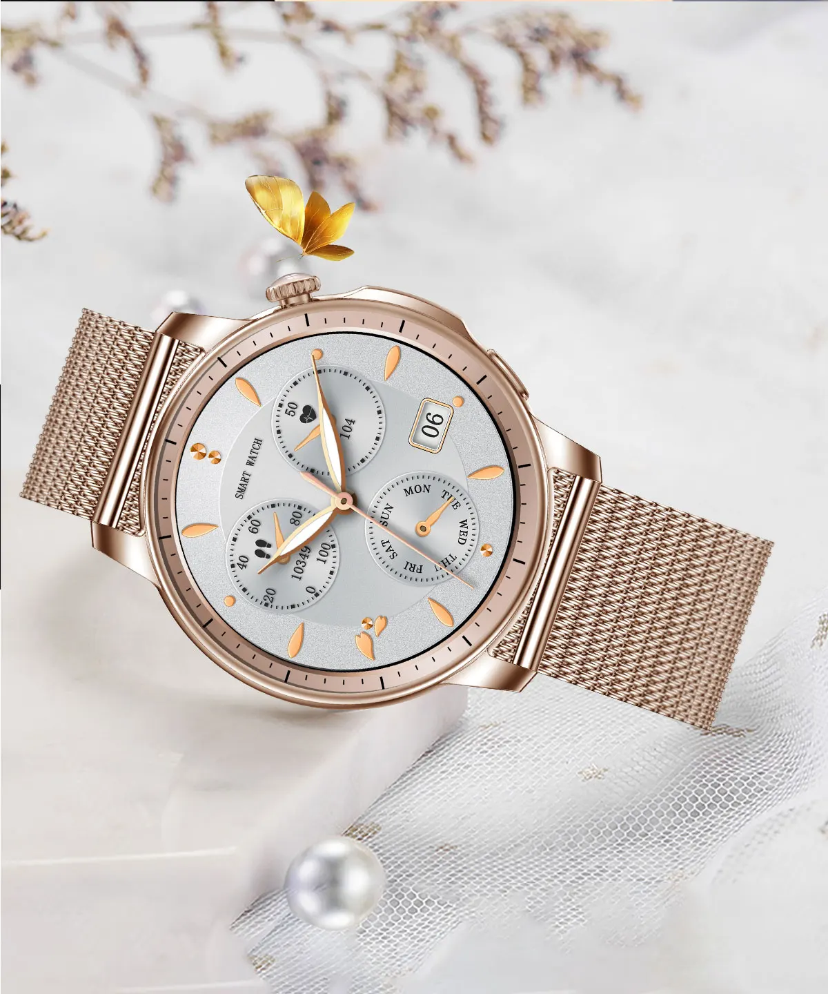 1. Introducing V65, a flagship smartwatch specially crafted for modern women. Our custom 1.32-inch AMOLED display delivers vivid colors and crystal-clear clarity, bringing your watch interface to life and experiencing the epitome of technological elegance.