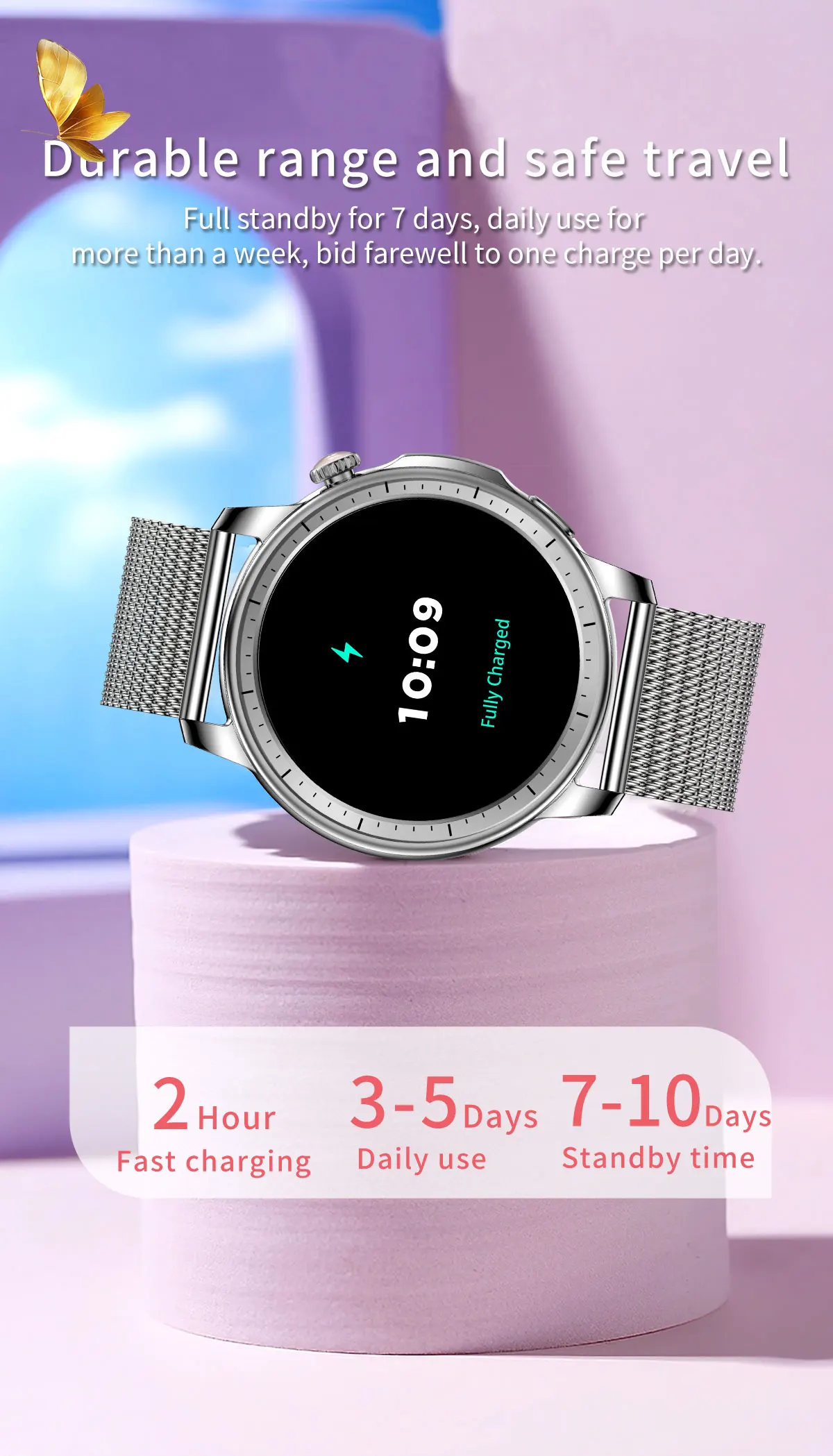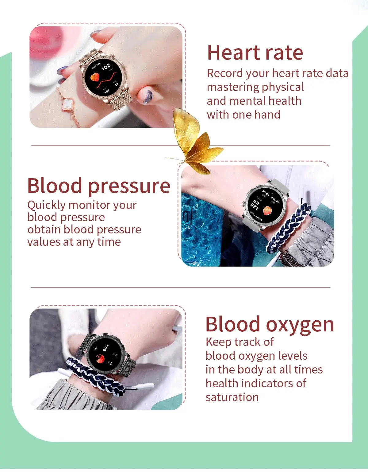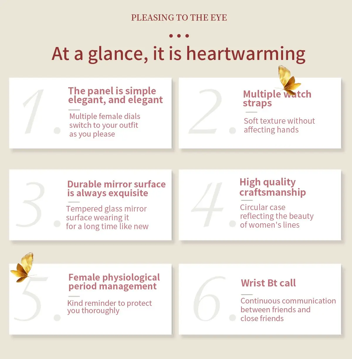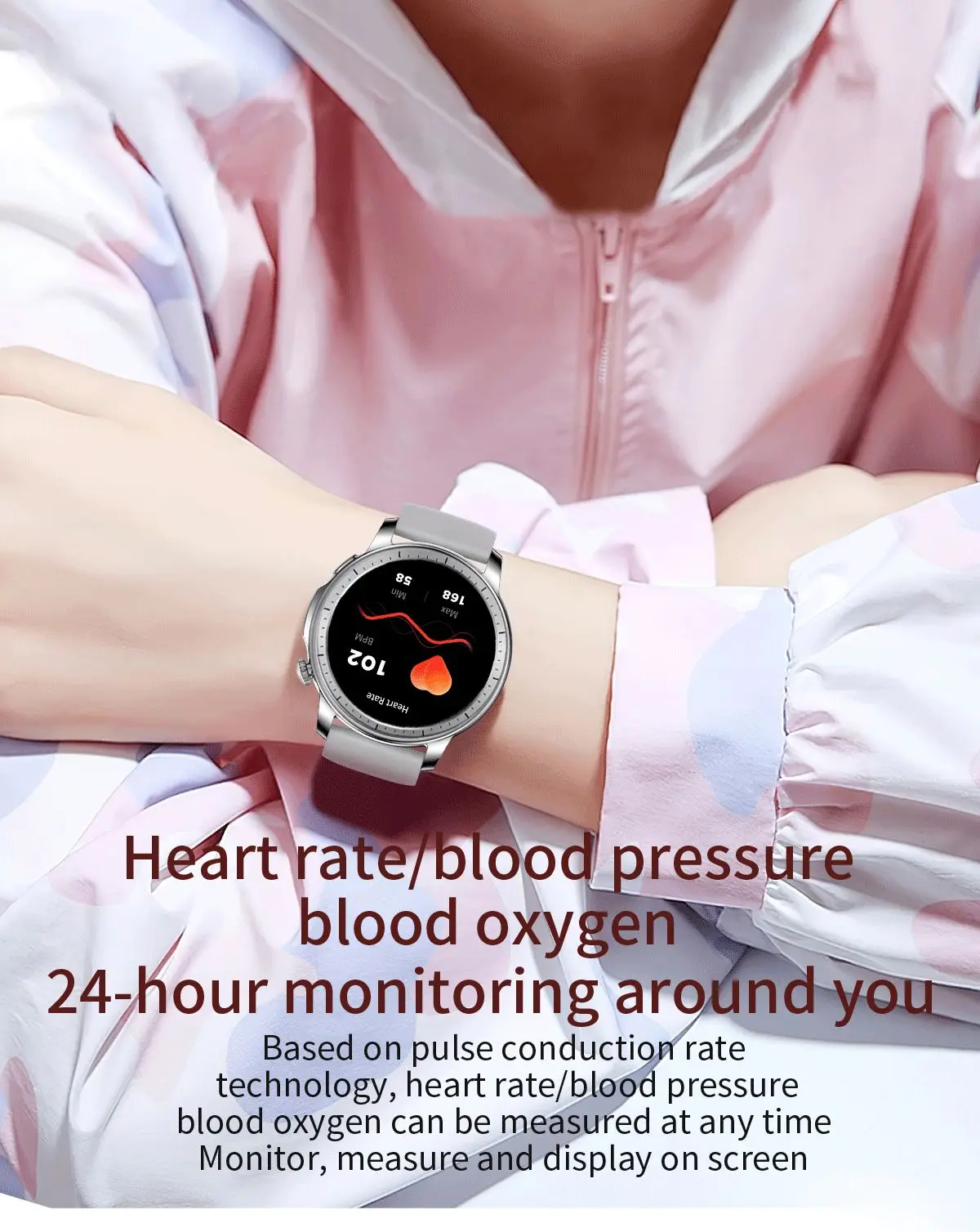1. Introducing V65, a flagship smartwatch specially crafted for modern women. Our custom 1.32-inch AMOLED display delivers vivid colors and crystal-clear clarity, bringing your watch interface to life and experiencing the epitome of technological elegance.