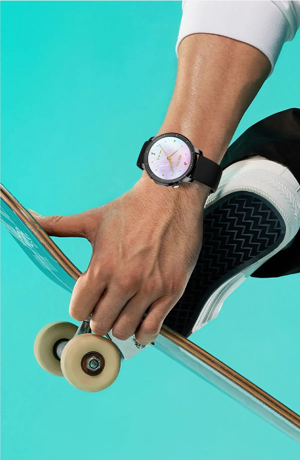 4.V65’s sleek design blends fashion and functionality. The stylish metal strap adds a touch of sophistication and is perfect for any occasion, while the included silicone strap provides versatility and comfort for active moments or casual days.