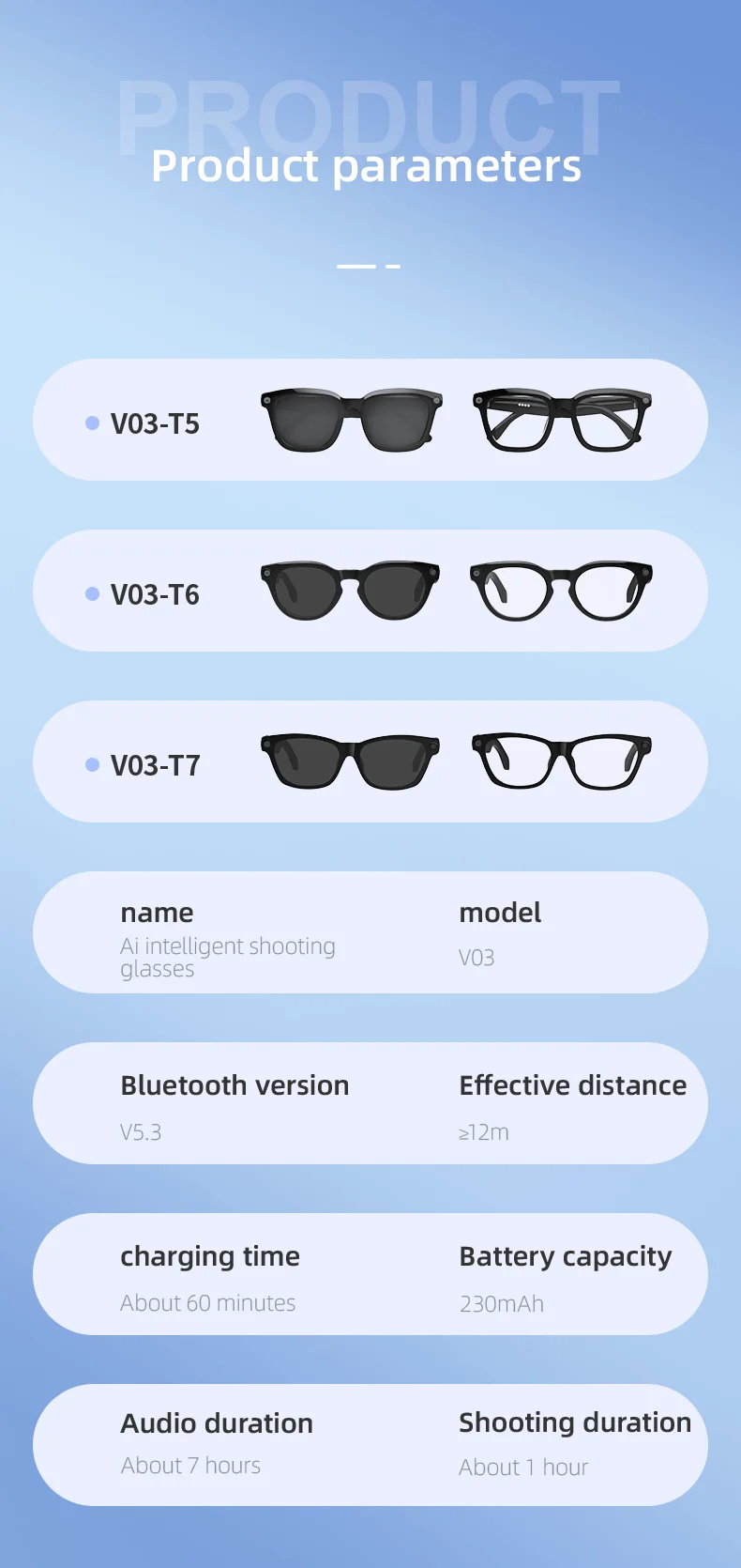 2025 New 800W Pixels Camera AI smart glasses 32GB Memory 1200P Video Shoot Wireless Transmission AI Translation Smart Sunglasses
