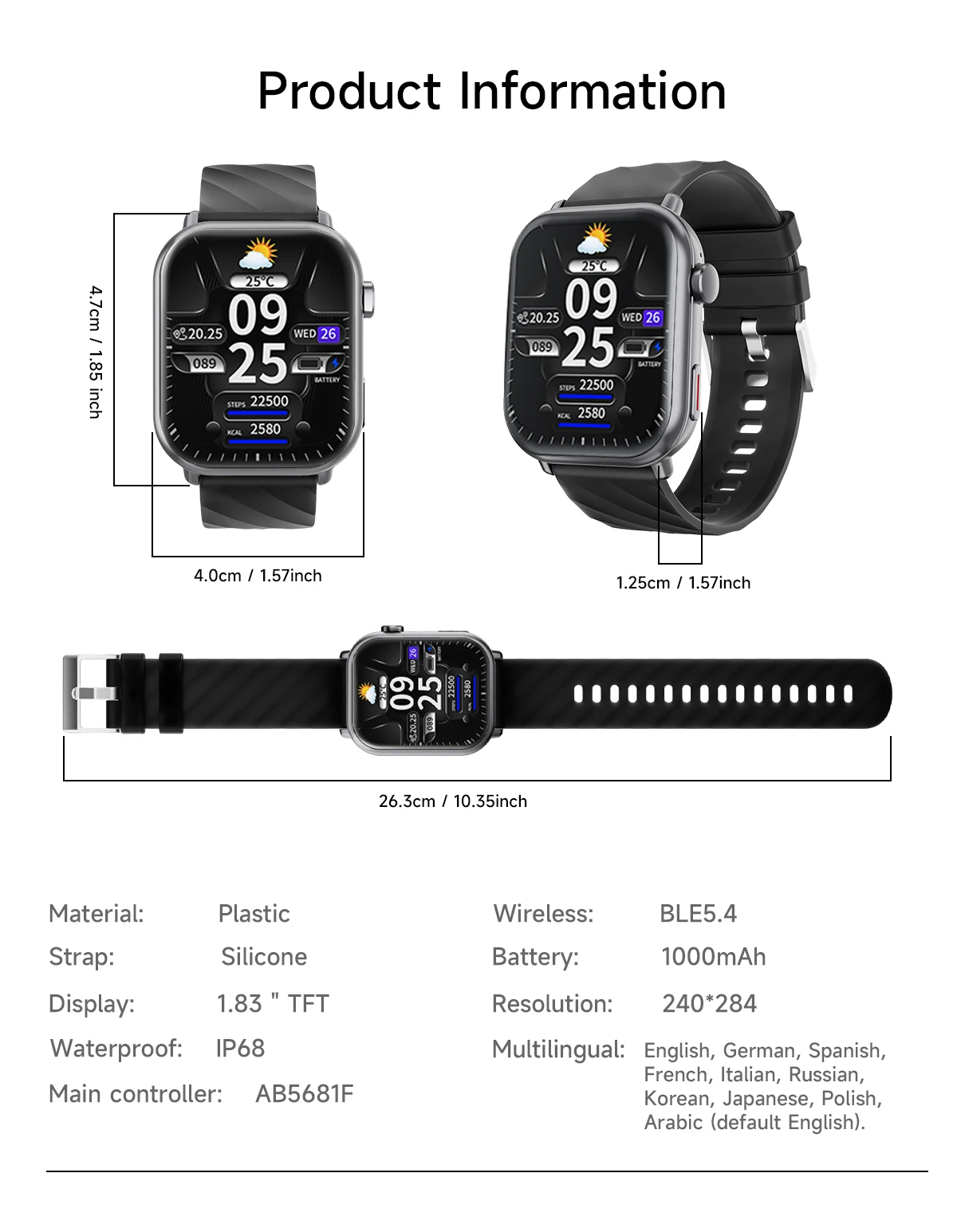 2025 NEW Hot Smartwatch 1.83''HD Screen1000mAh Large Battery Outdoor Sports Watches Bluetooth Call IP68 Waterproof for Men Women