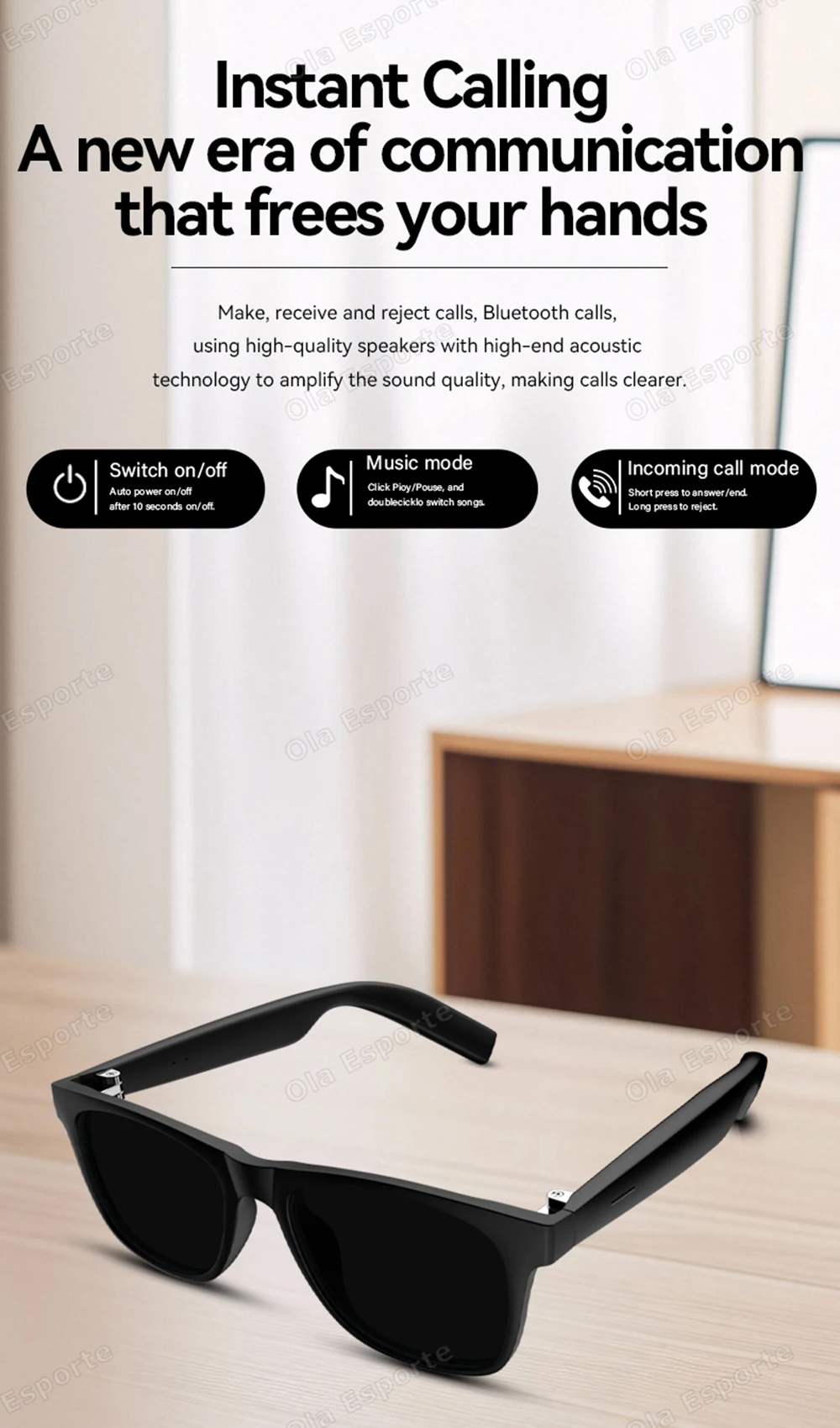 2025 New Men's Smart Glasses Women's Bluetooth Glasses Voice Call Control Music Voice Assistant UV Polarized Sunglasses Eyeglass