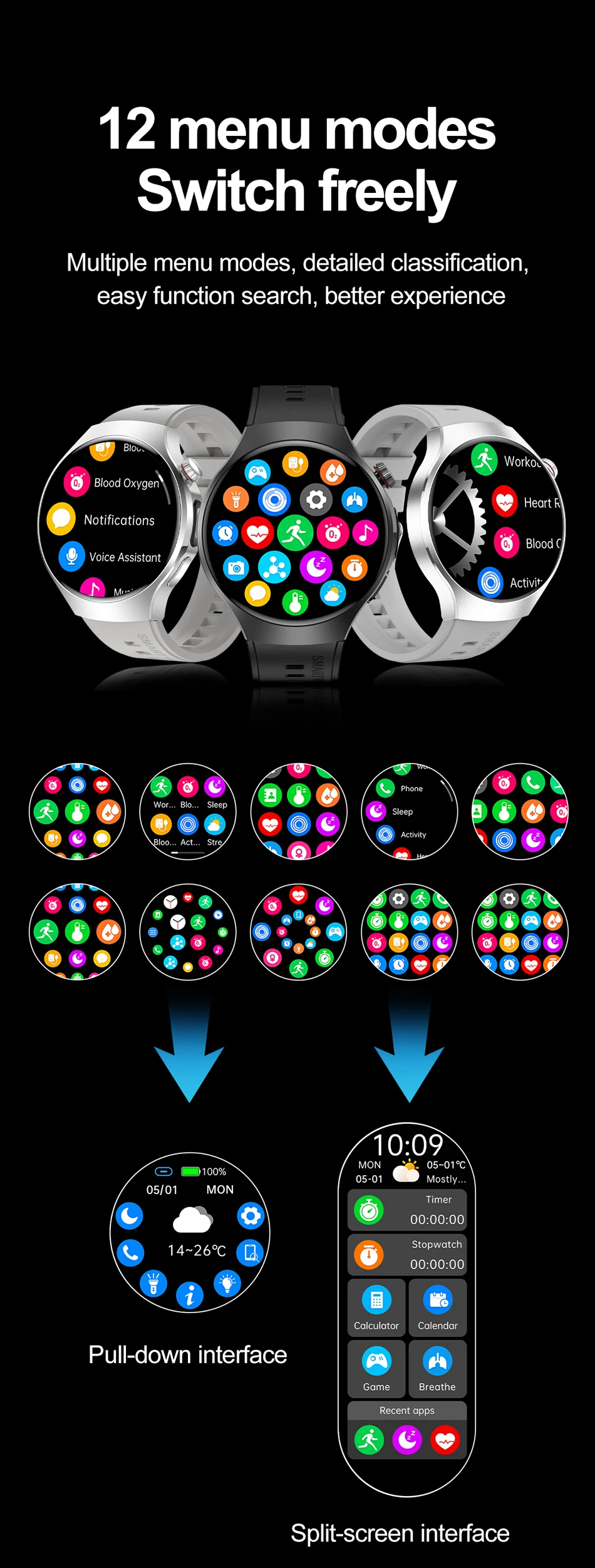 Primary Functions: Bluetooth Calling, Heart Rate Monitoring, Breathing Exercises, Women's Health (Period Tracking), Sleep Monitoring, Sedentary Reminders, Call Notifications, Calendar, Alarm Clock, Stopwatch, Weather, Music Control, Voice Assistant, Timer, Calculator, Games, etc.