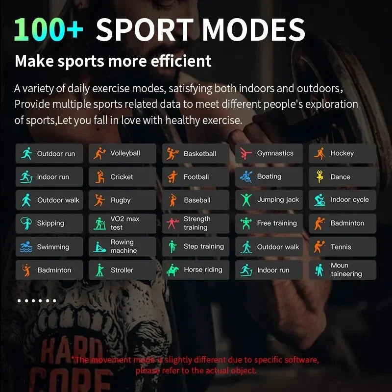 Professional sports modes: more than 100 sports modes such as running, football, badminton, walking, tennis, basketball, table tennis, cycling, yoga, mountain climbing, etc.