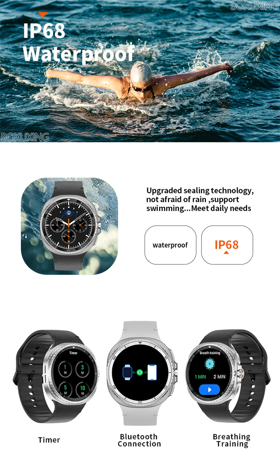 Health monitoring, Bluetooth calling, IP68 waterproof, Multiple sports modes
