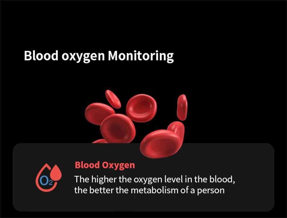Watch features 5: Blood oxygen monitor:Confirm whether the blood oxygen saturation is low or high by monitoring blood oxygen, allowing you to keep track of body changes at any time