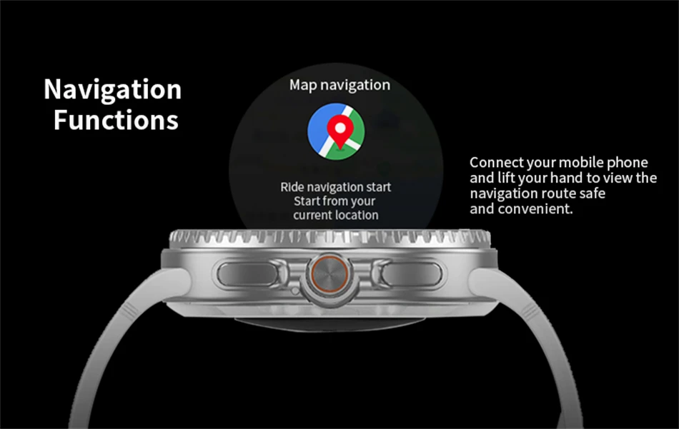 Watch features 2: Navigation function:Just connect the smart watch to your mobile phone, and the map navigation will be displayed on the watch. You can view the navigation route by raising your hand, which is safe and convenient.