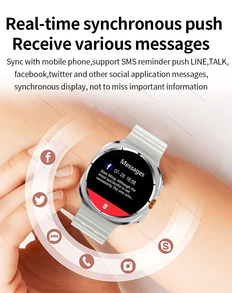 Intelligent Reminder: Call alerts, SMS notifications, notifications from social media apps (WeChat, QQ, Facebook, Twitter, WhatsApp, LinkedIn, Instagram, Messenger, Snapchat, Line, Kakao Talk, Viber, Skype, Telegram)