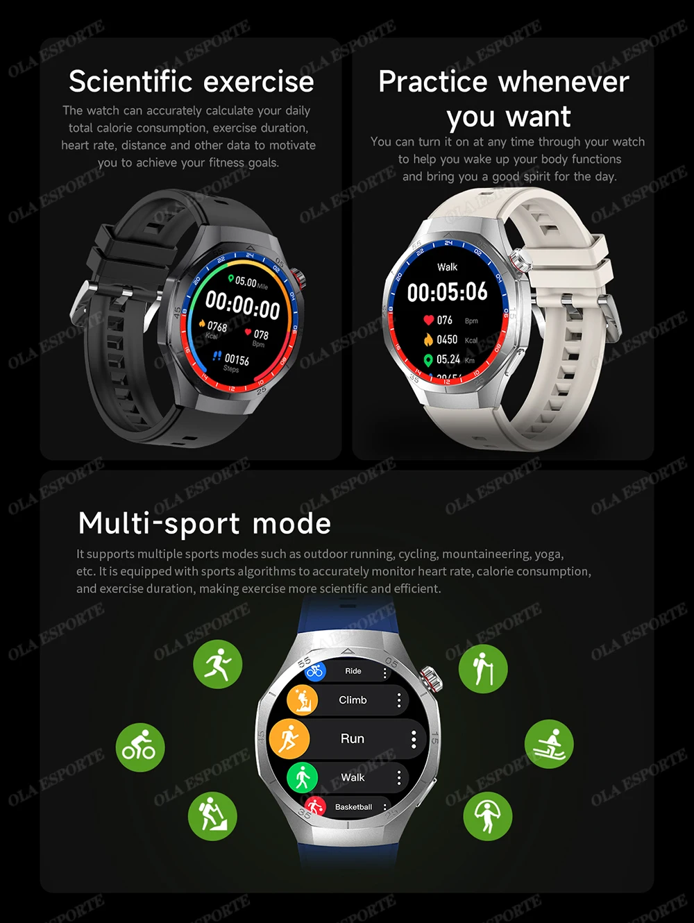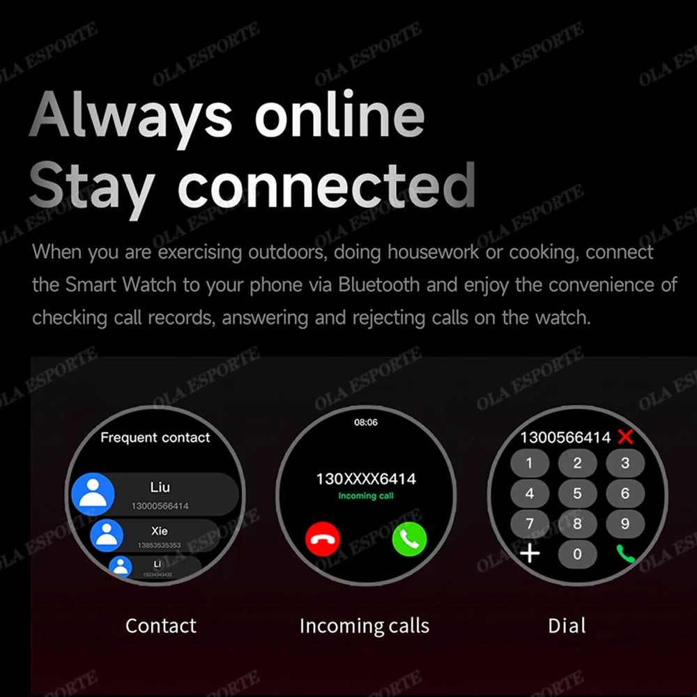 Gesture to answer, raise your hand to light up the screen, large battery capacity of 300 mAh, full metal texture appearance, step counting, sleep detection, alarm clock, information reminder,ECG Monitoring,Multi-language, default language, custom watch face function, APP watch face library, important applications, switch phone ringtone, music player, exercise, sleep, QR code addition, sedentary, drinking reminder, information push, Siri voice assistant, calculator, calendar, alarm clock, call settings, timer, stopwatch, game, breathing, weather, password lock screen function, find phone, split screen UI, GPS track, etc.