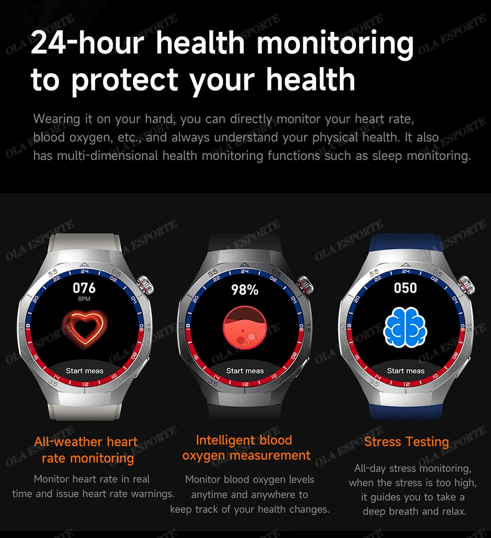 ➤Health Monitor: Heart Rate, Blood pressure, oxygen, ECG