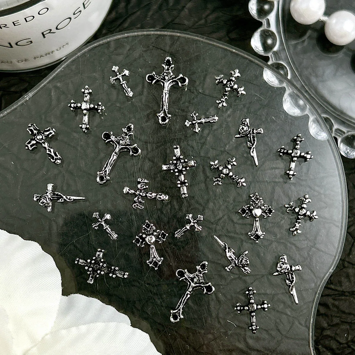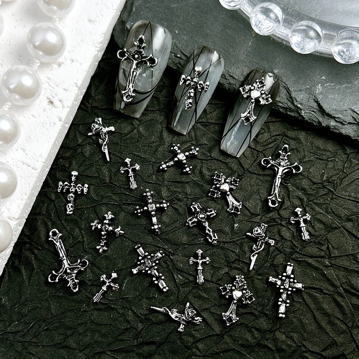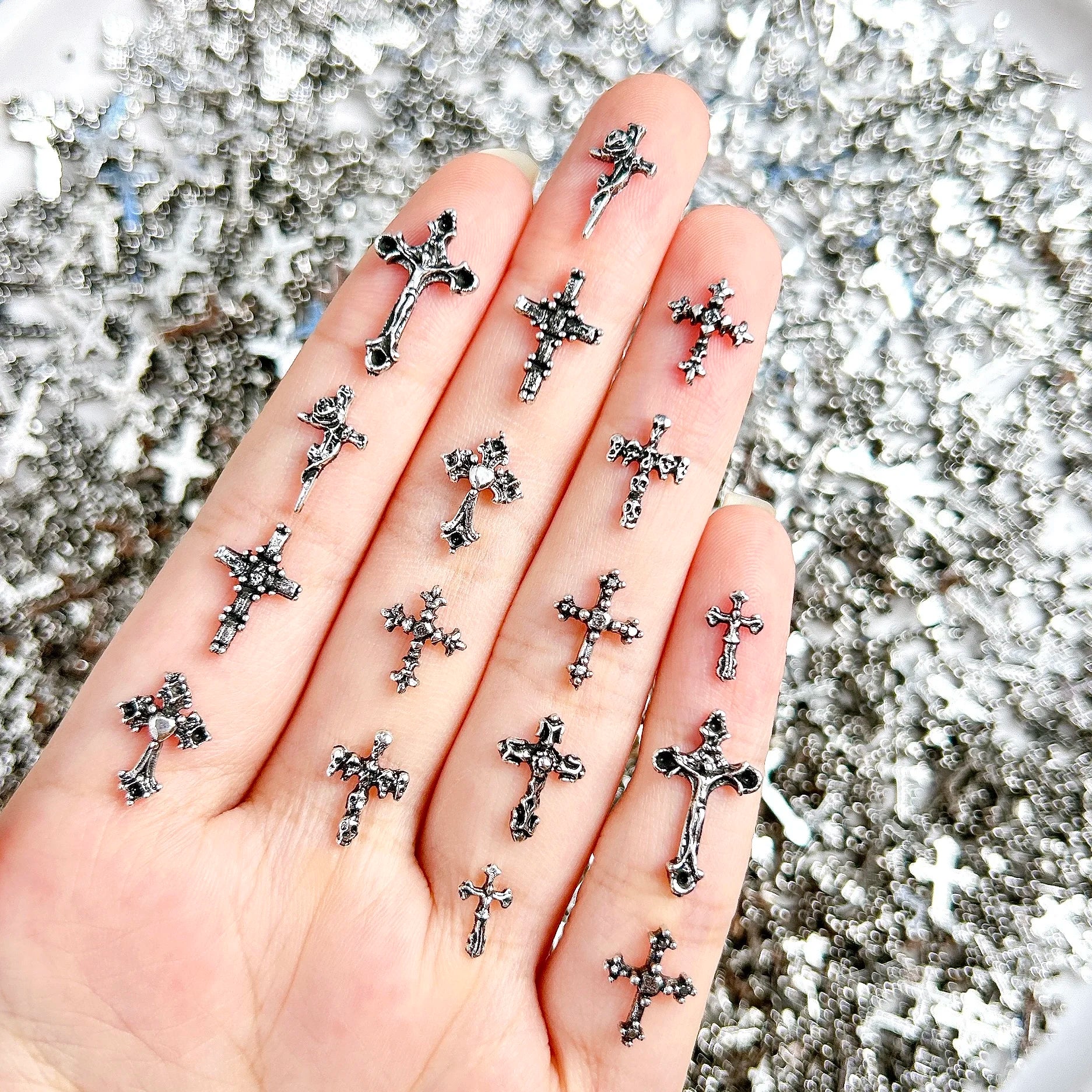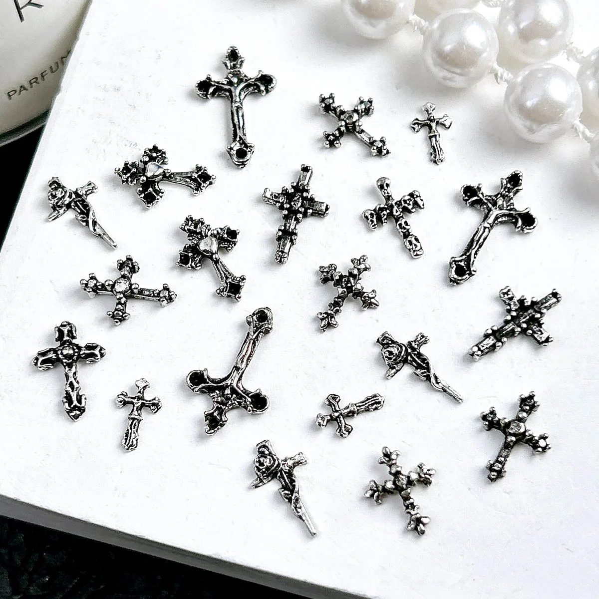 20PCS Multiple Style Classic Cross Alloy Nail Art Decorations 3D Minimalist Creative Cross Cool Style Nail Charms DIY Nail Parts