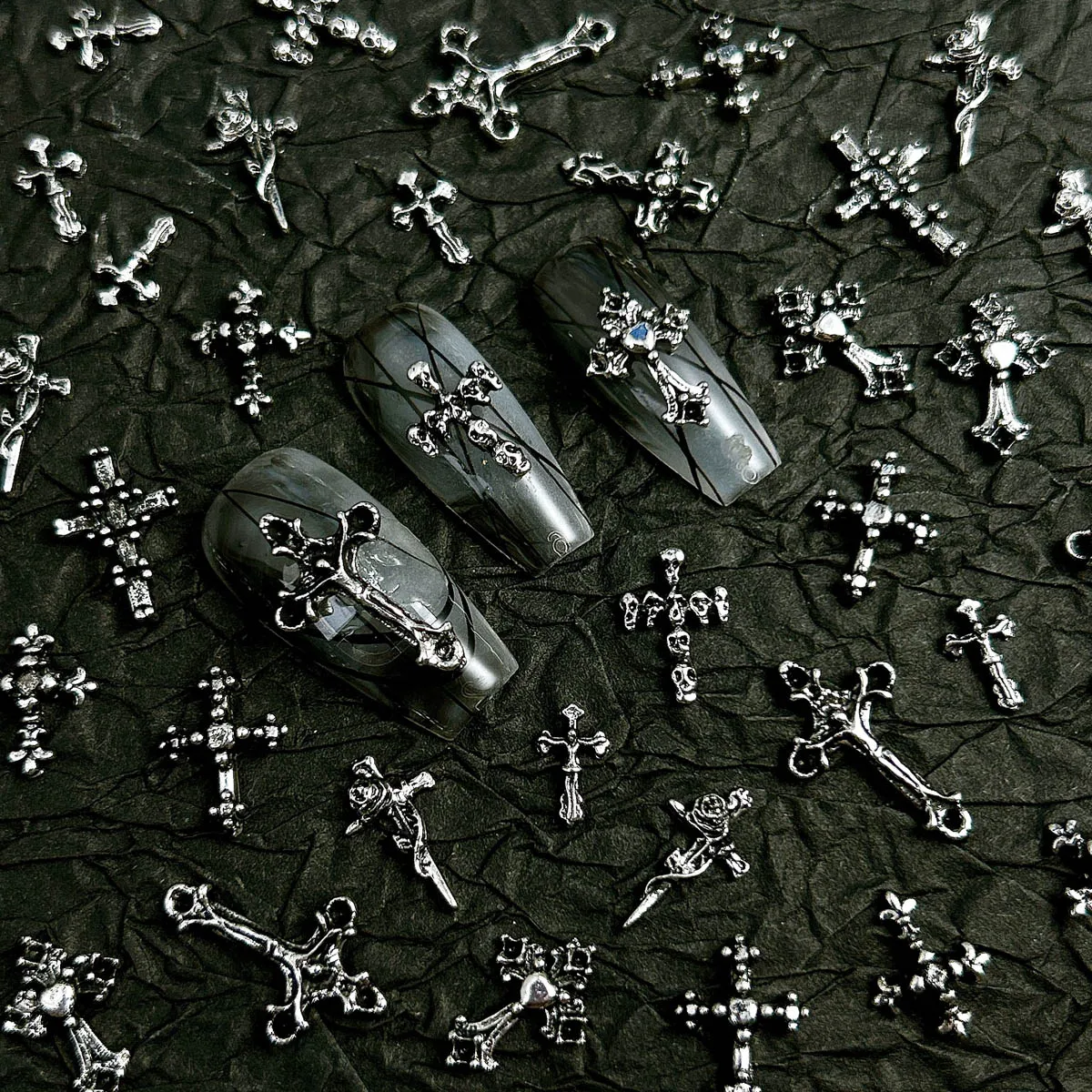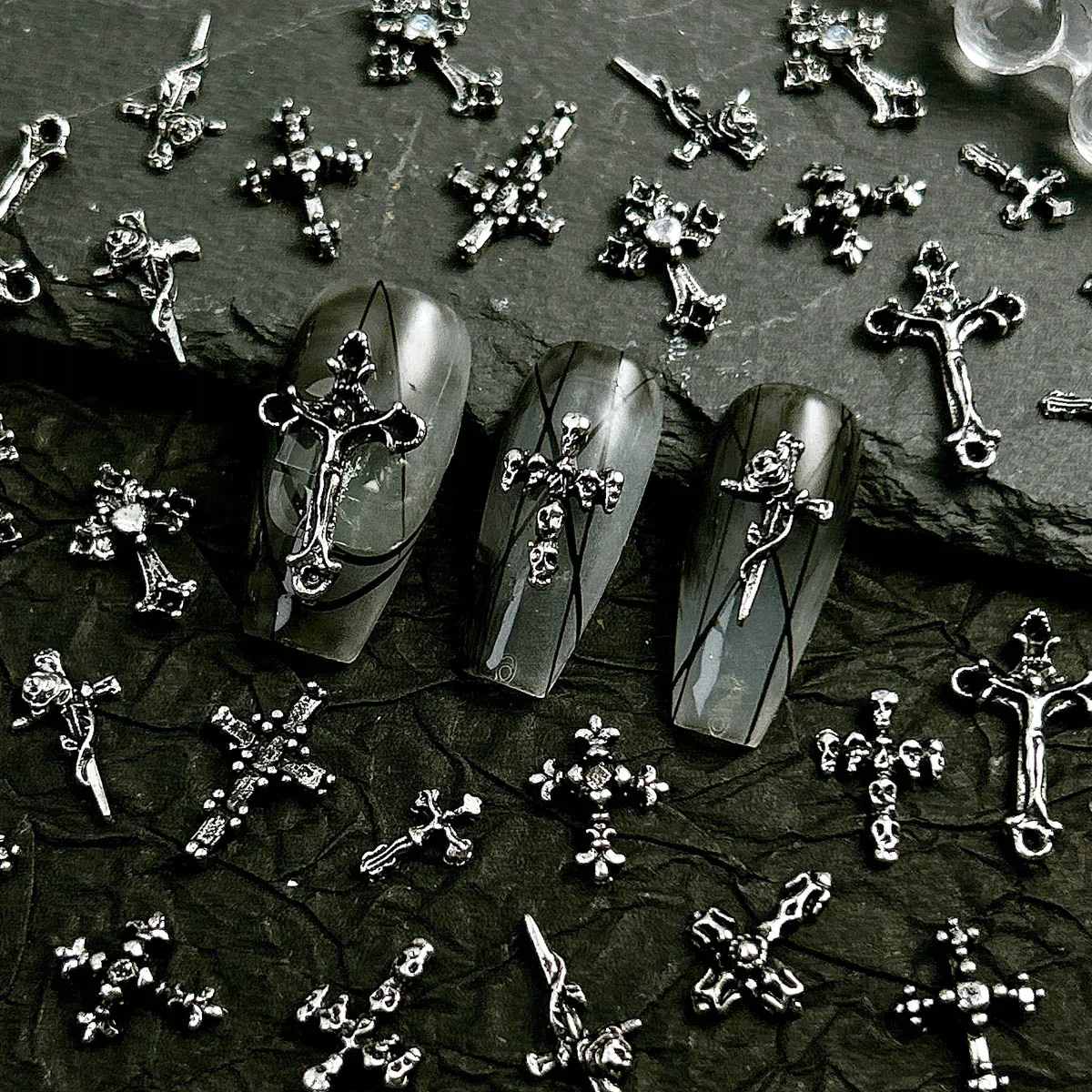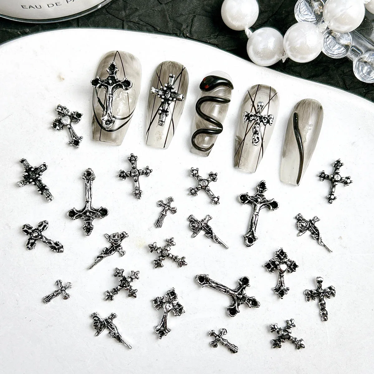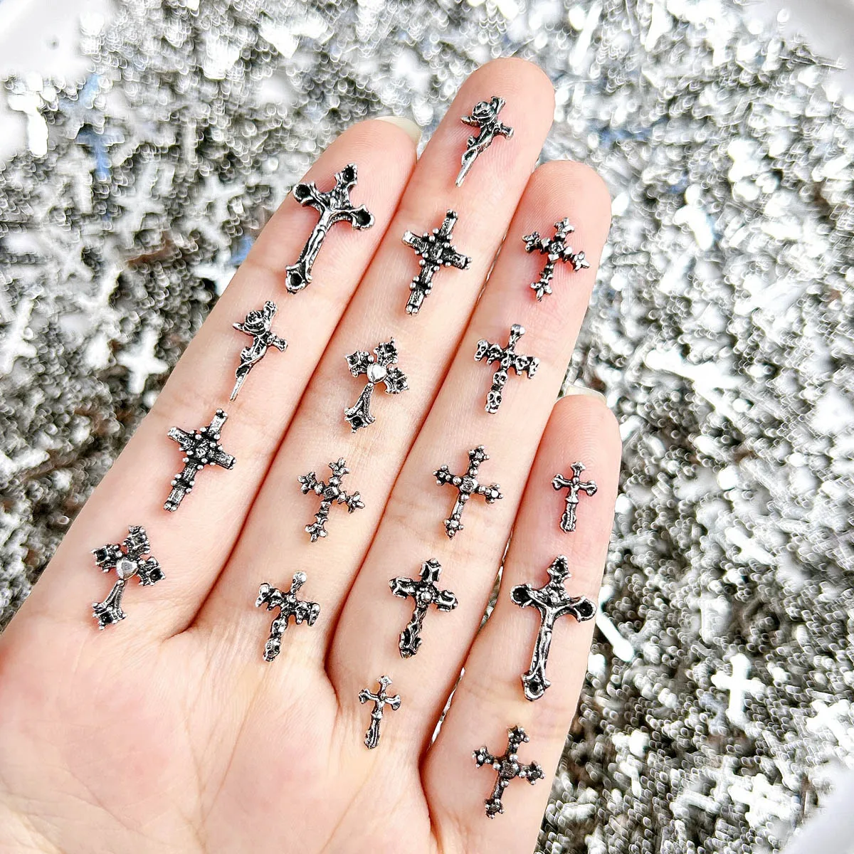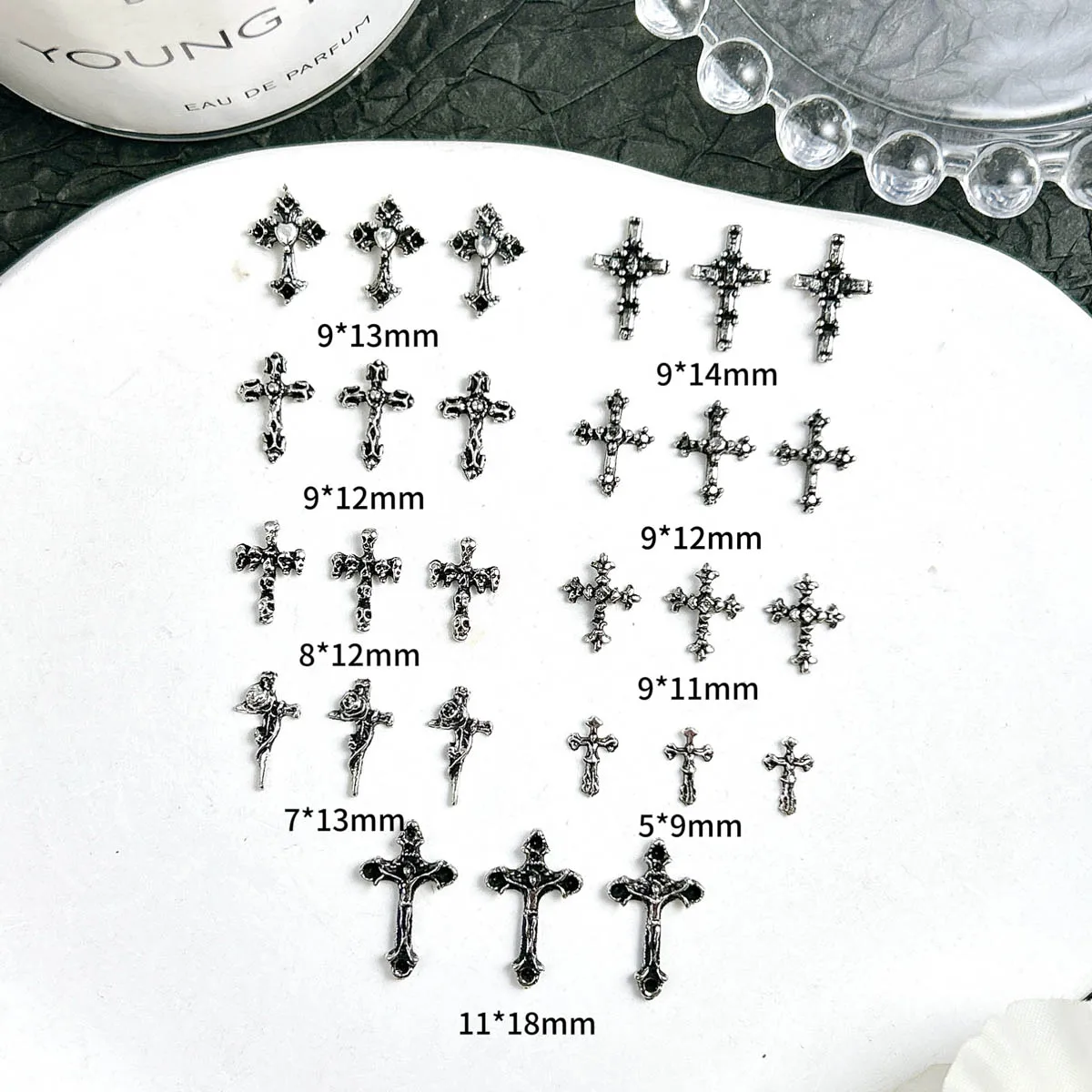 20PCS Multiple Style Classic Cross Alloy Nail Art Decorations 3D Minimalist Creative Cross Cool Style Nail Charms DIY Nail Parts