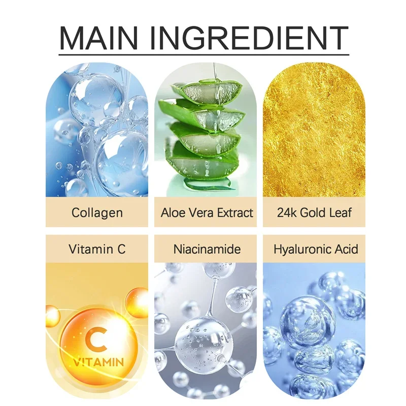 Ingredient: Collagen,Aloe vera extract, 24k golden leaves, vitamin C, niacinamide,
