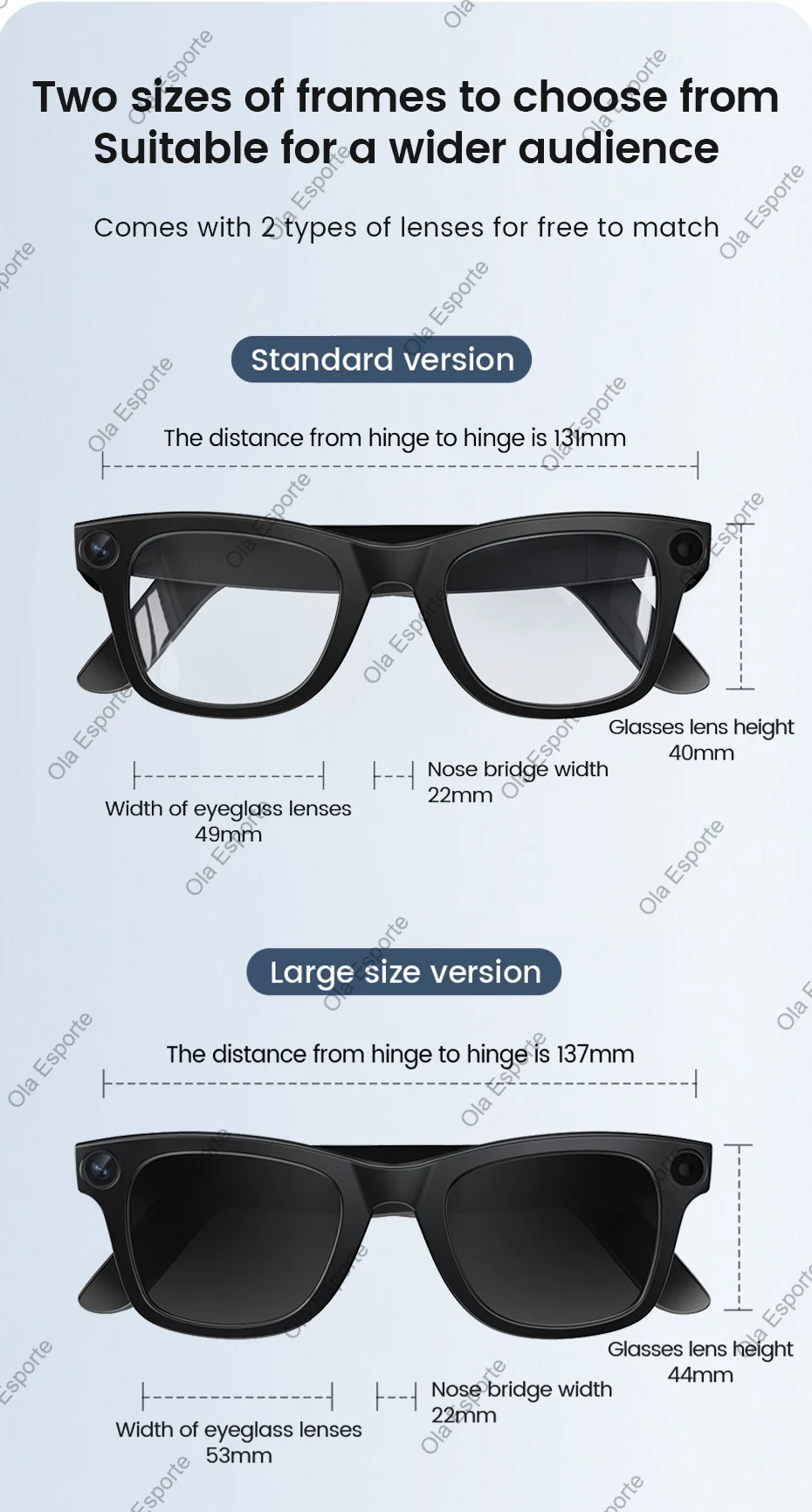2IN1 AI Smart Glasses 800W Pixel Camera Bluetooth Call Voice Assistant Stereo Music Translate anti-blue light lenses Sunglasses