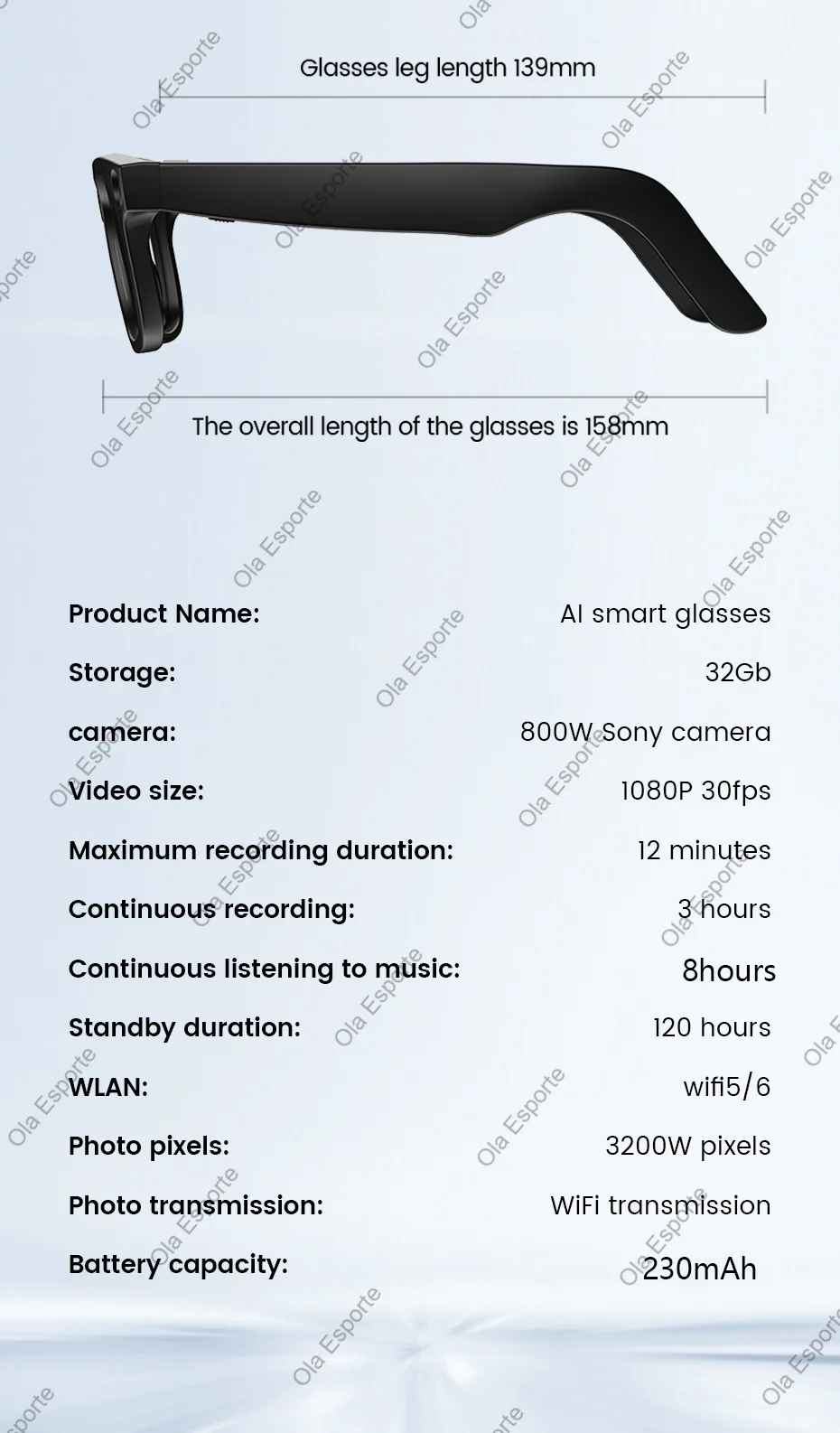Function: Music,Camera,VIDEO,Voice Assistant,calling,Sun protection,Anti-blue light,Chat gpt