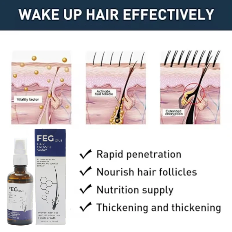 2pcs FEG hair growth spray original Organic Anti Hair Loss Hair Growth Treatment Oil For Thicker Long Hair -50ML