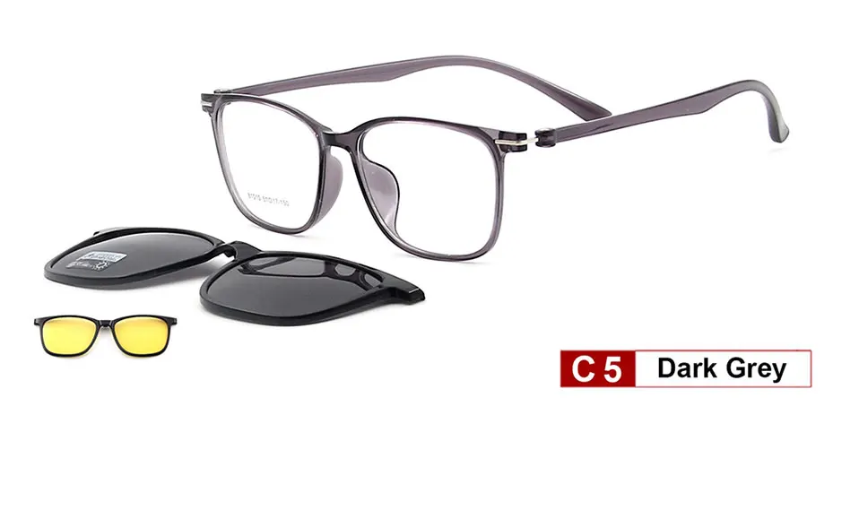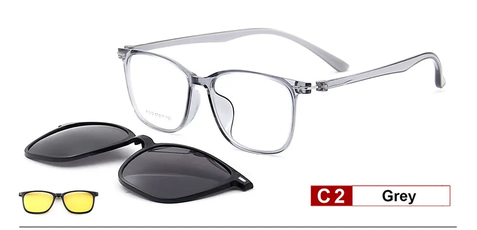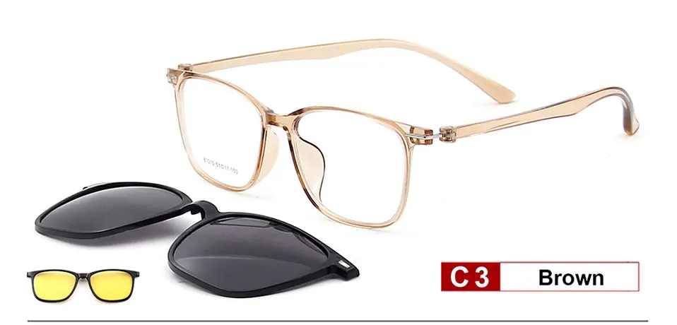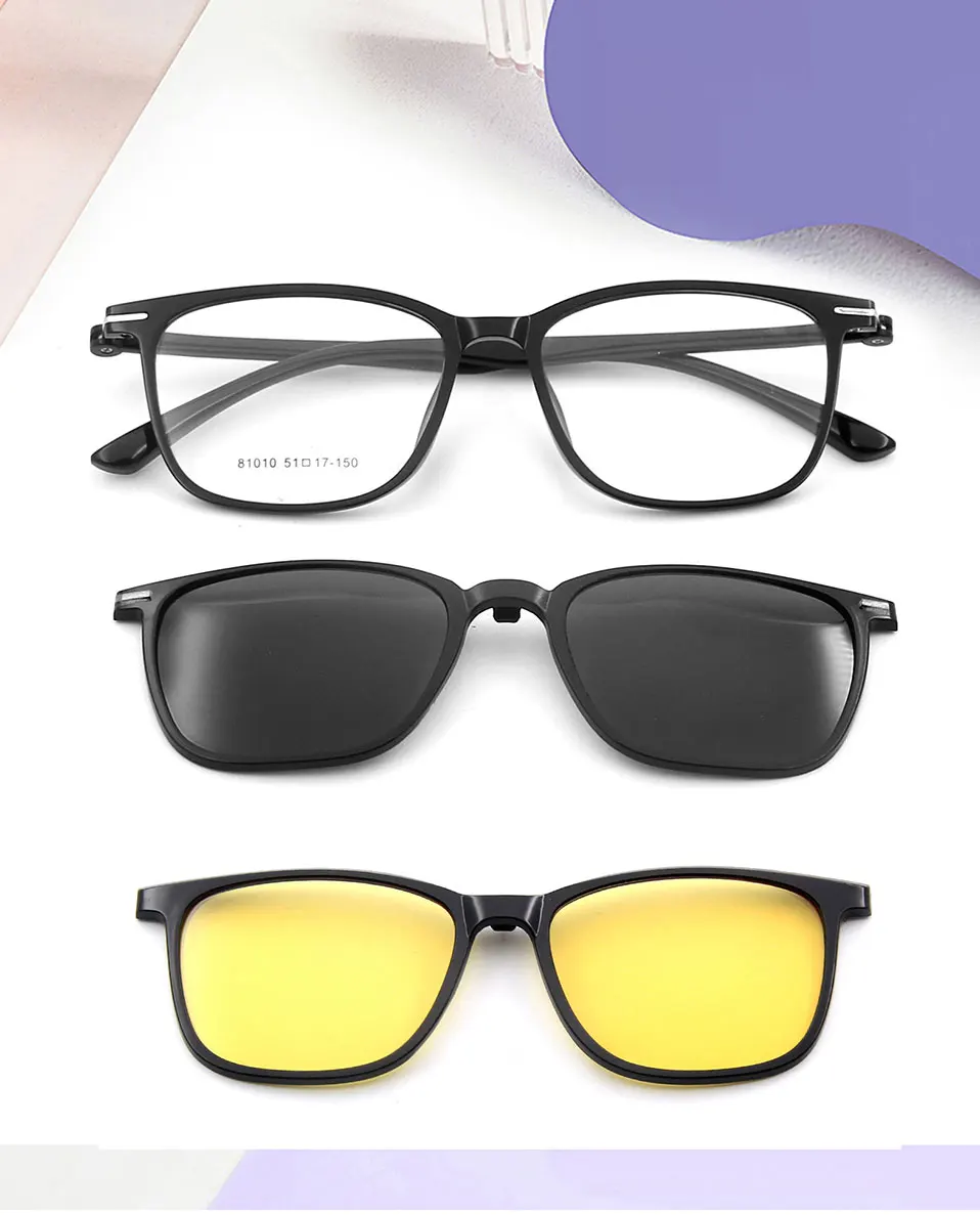 3-in-1 Square Ultralight TR90 Women Polarized Clip-On Sunglasses & Night Vision Lightweight Glasses Frames for Day to Night