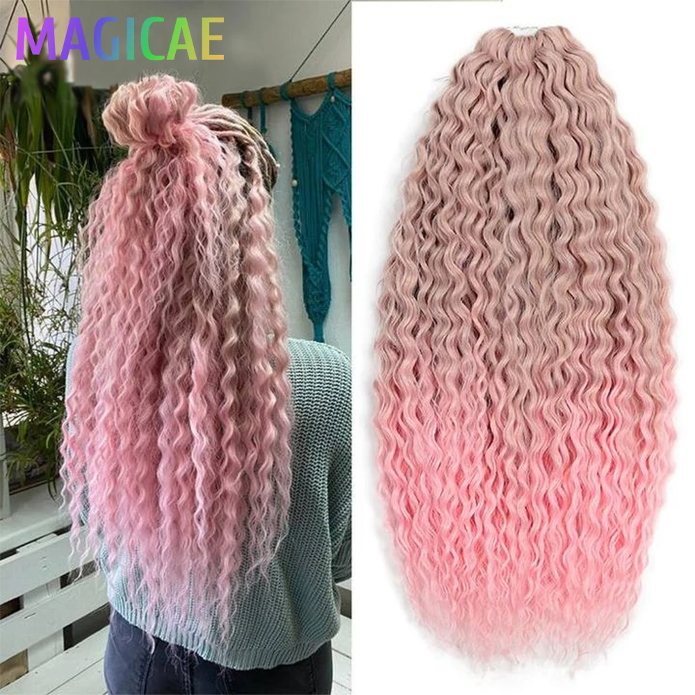 300g 24Inch Loose Deep Wave Crochet Braiding Ombre Pink White Brown Synthetic Hair Extension Body Wavy Braids Hair Blonde Twist