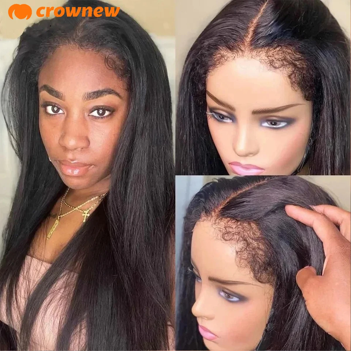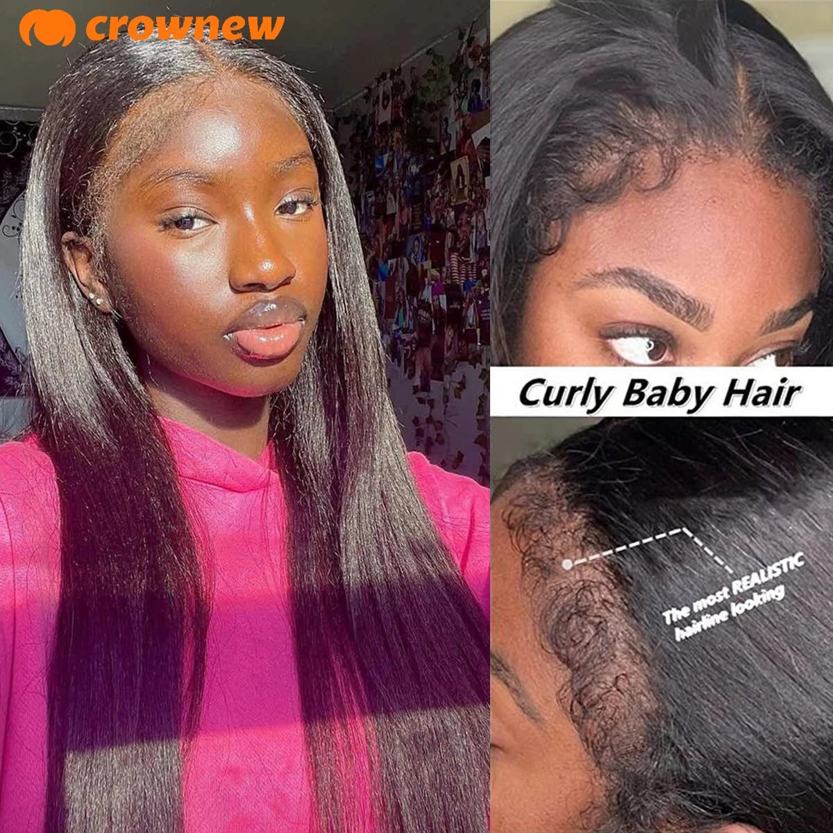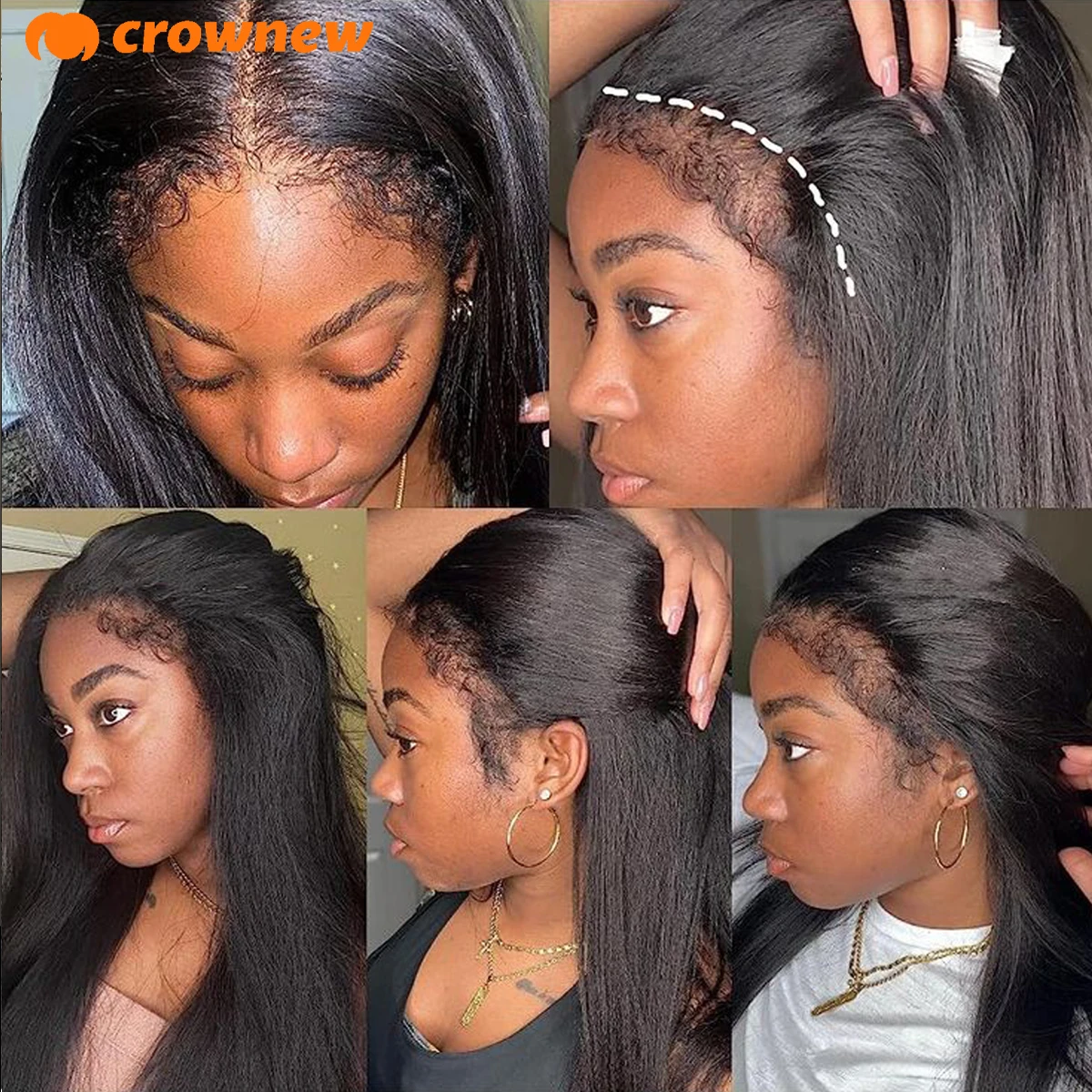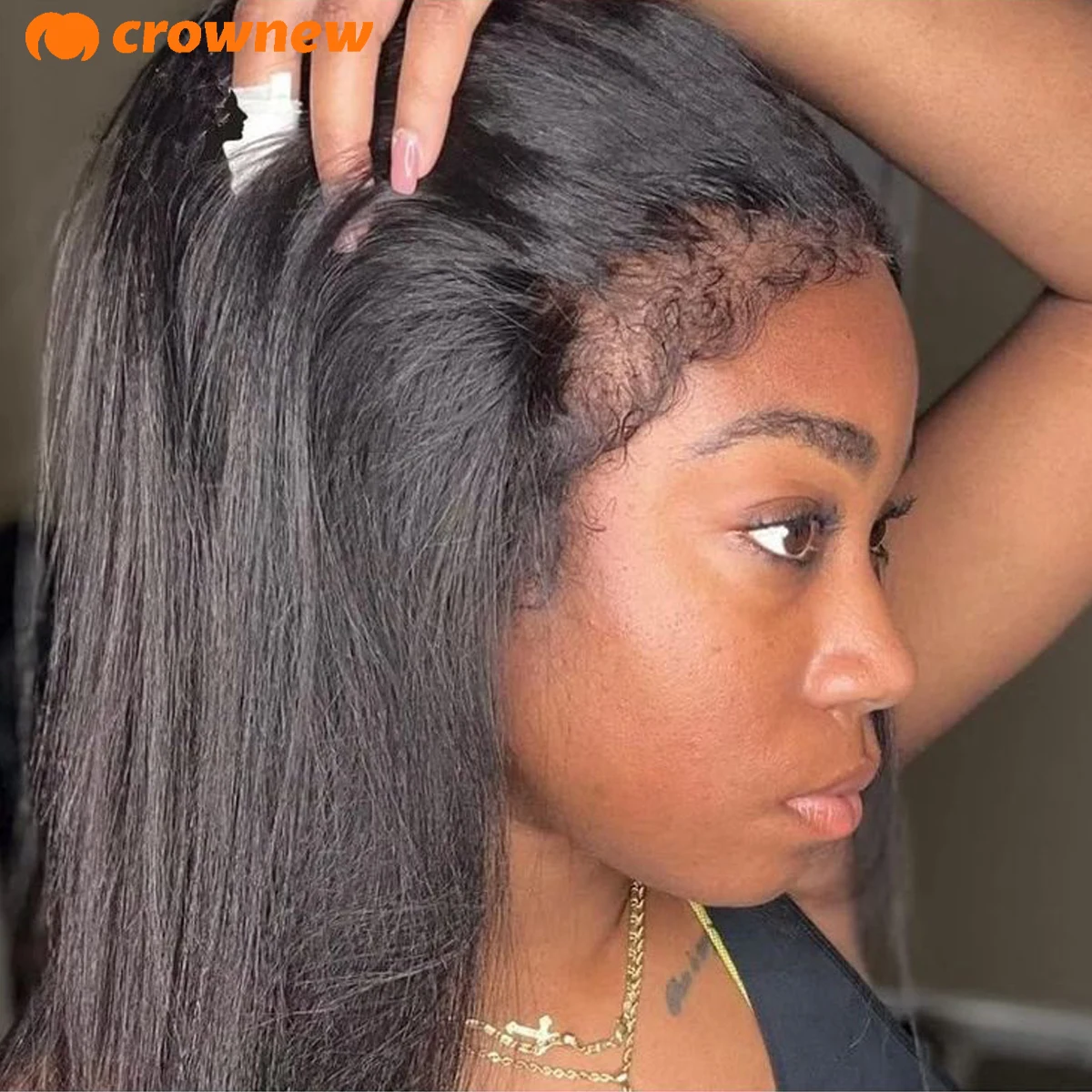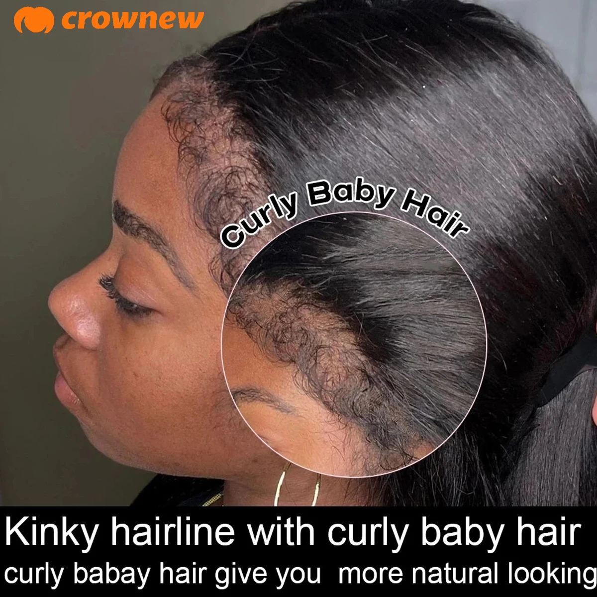 4C kinky Edges Wig Natural Hairline Straight Human Hair Wigs 13x4 HD Lace Frontal Wig Glueless Wigs Human Hair Curly Edges Hair