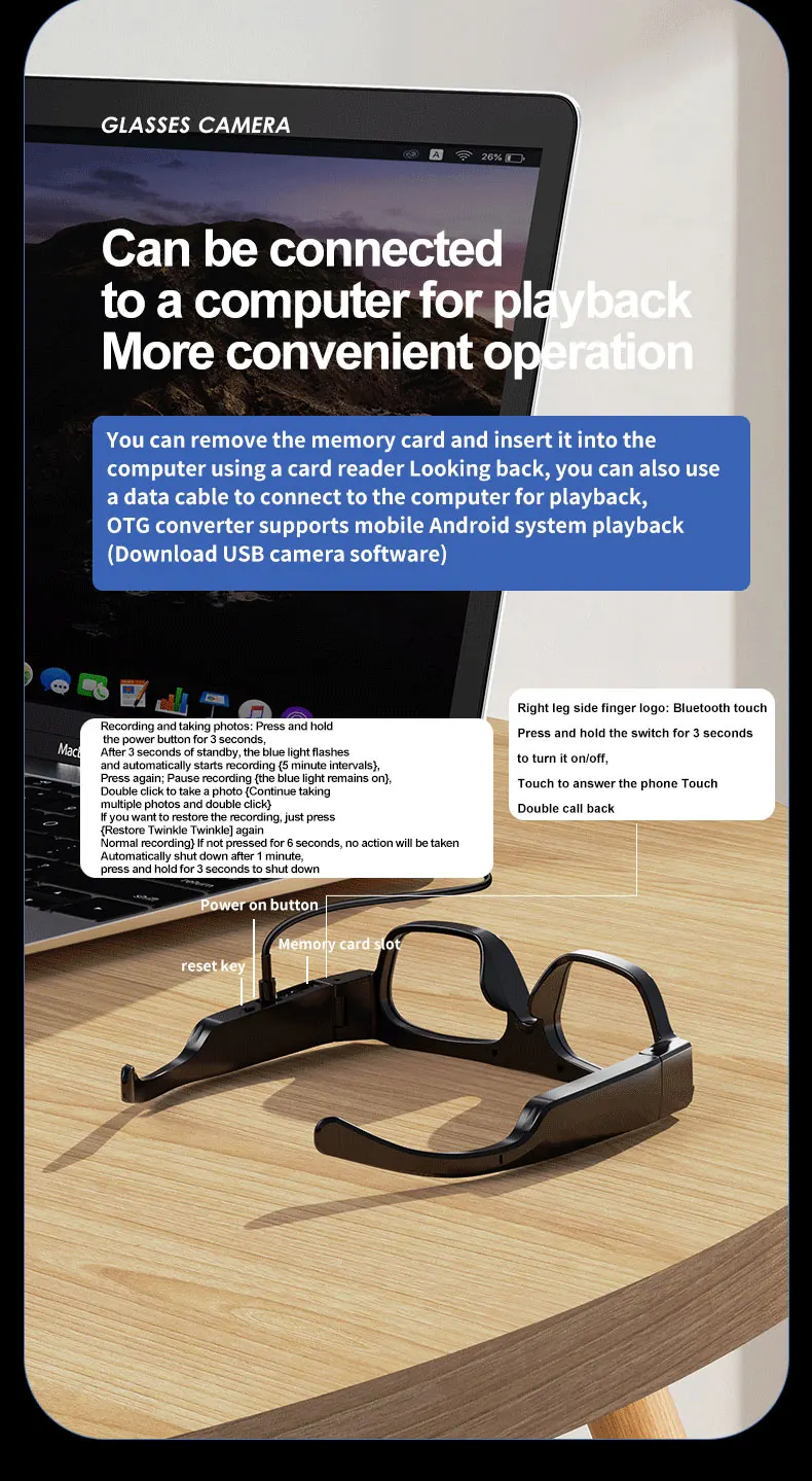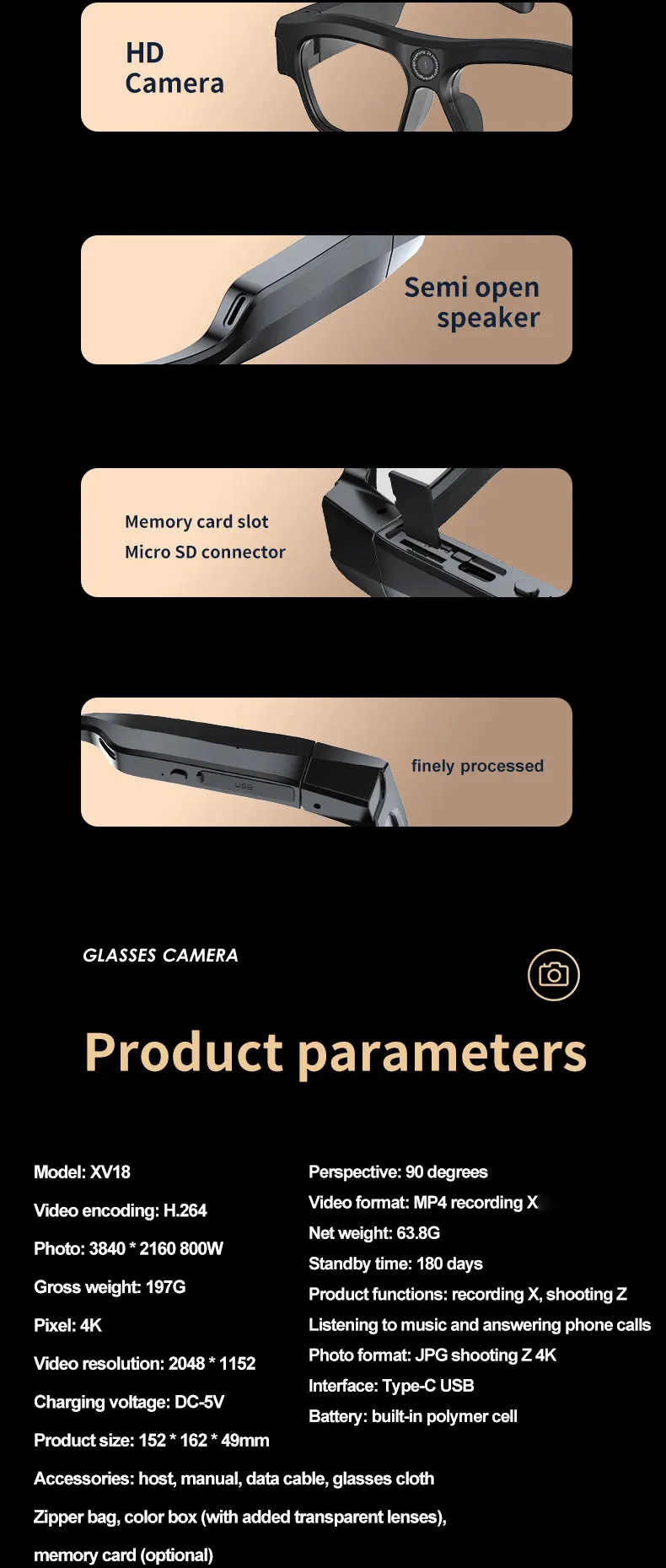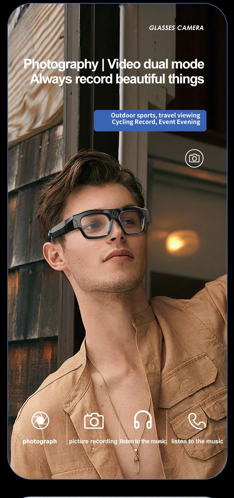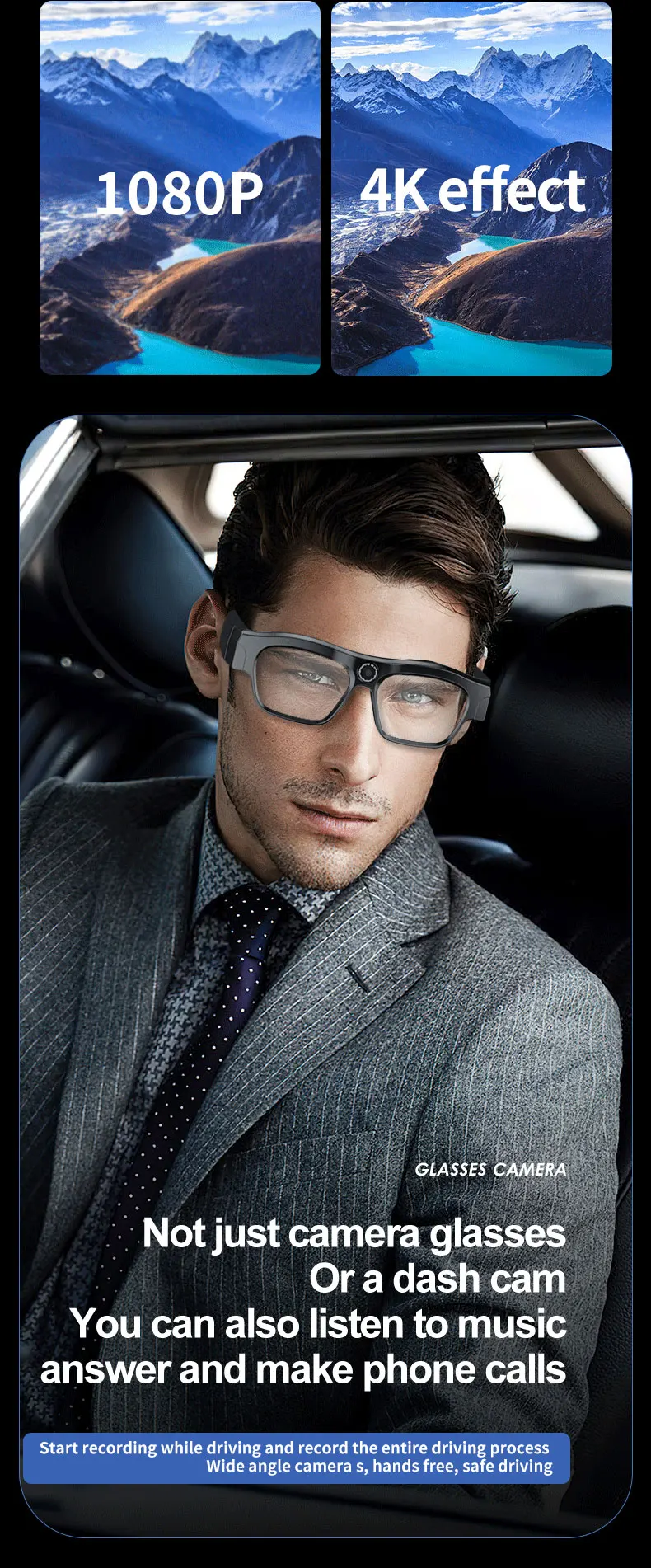 Bluetooth Glasses, 4K High-definition Video Glasses Camera, Bicycle Dash Cam,