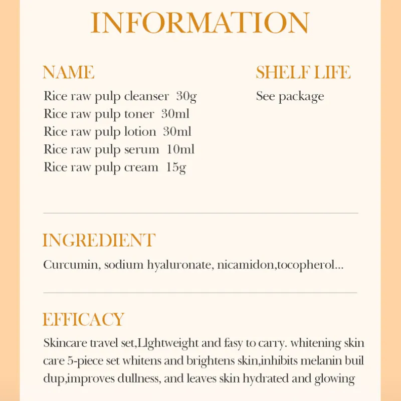 The BIOAOUA 5pcs Rice Raw Whitening Travel Set boasts several key features that set it apart from other skincare products. Firstly, each product is enriched with rice extract, which is rich in vitamins and antioxidants that help to nourish and protect the skin. The cleanser effectively removes dirt and makeup without stripping the skin of its natural oils, while the toner helps to refine pores and prepare the skin for better absorption of subsequent products. The whitening serum is formulated to target dark spots and uneven skin tone, promoting a brighter and more luminous complexion. The moisturizer provides deep hydration, ensuring that your skin remains soft and supple throughout the day. Additionally, the gentle exfoliating scrub helps to remove dead skin cells, revealing a smoother and more radiant surface. All products are free from harsh chemicals, making them suitable for all skin types, including sensitive skin.
