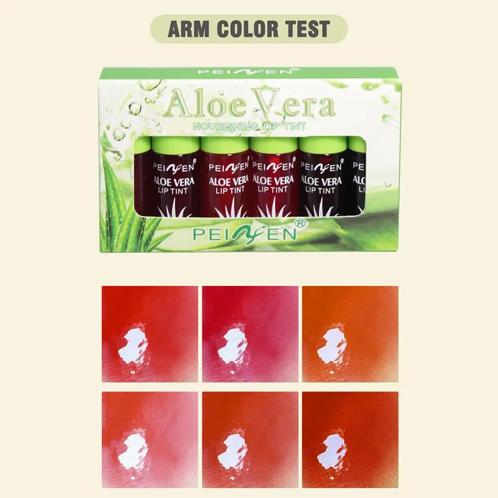 6 Color Lip Tint Stain Set Plumping Liquid Lipstick Aloe Vera Watery Lip Stain Lip Gloss Multi-use Moisturizing Lip & Cheek Tint