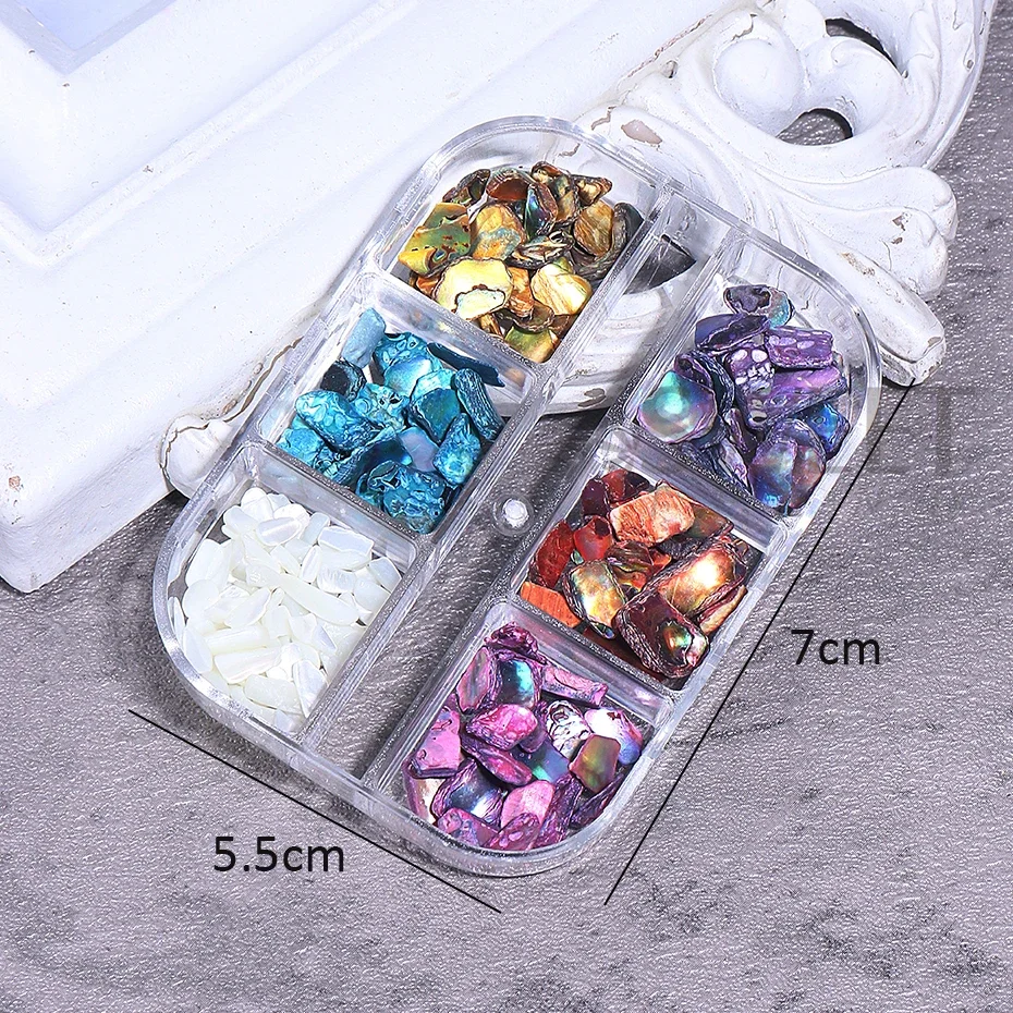 6 Grids Abalone Shell Flakes Nail Art Decoration 3D Charms Irregular Seashell Fragment Aurora Slices DIY Manicure Accessories