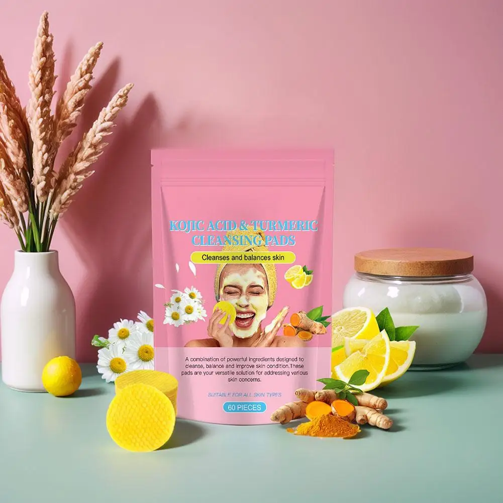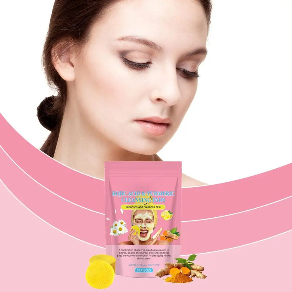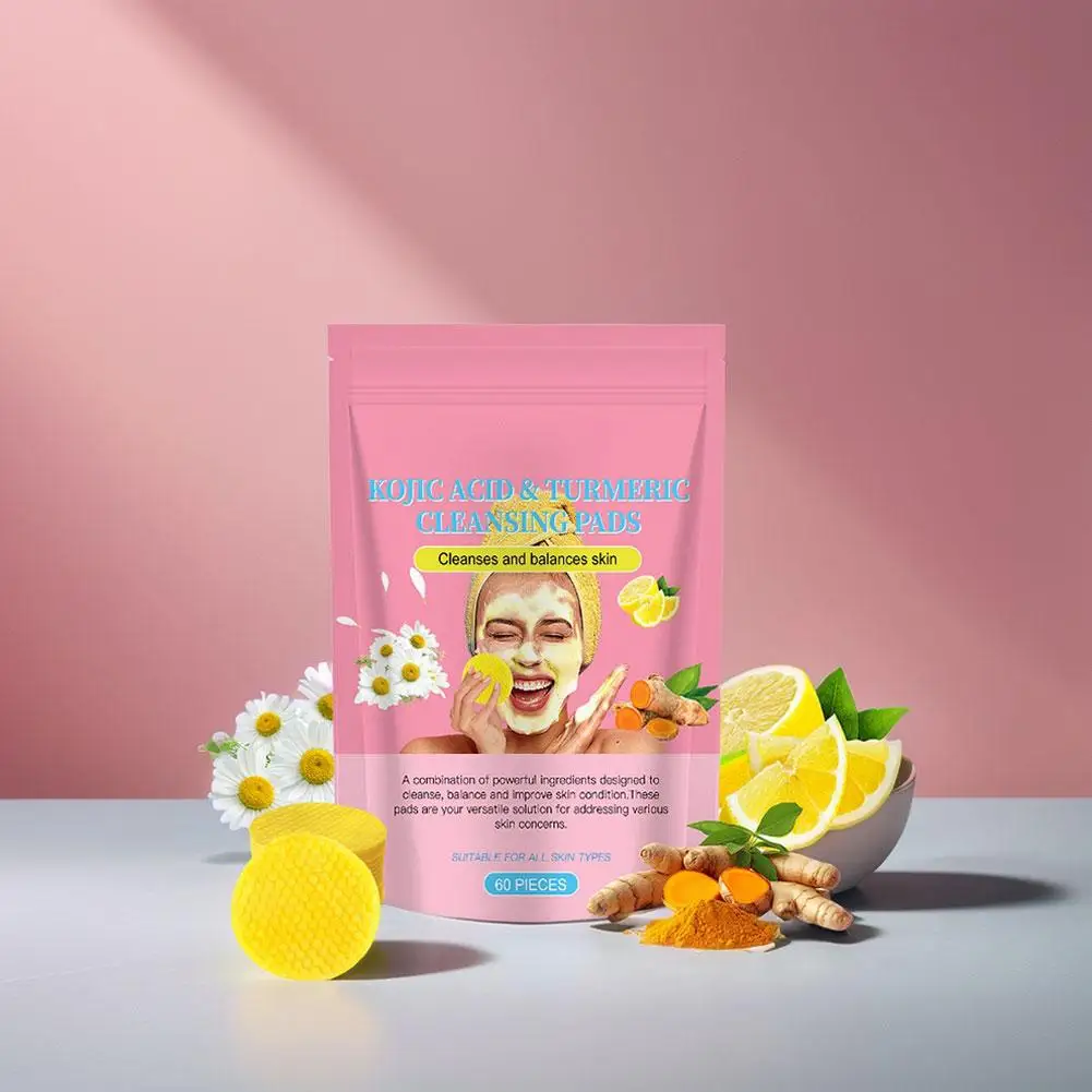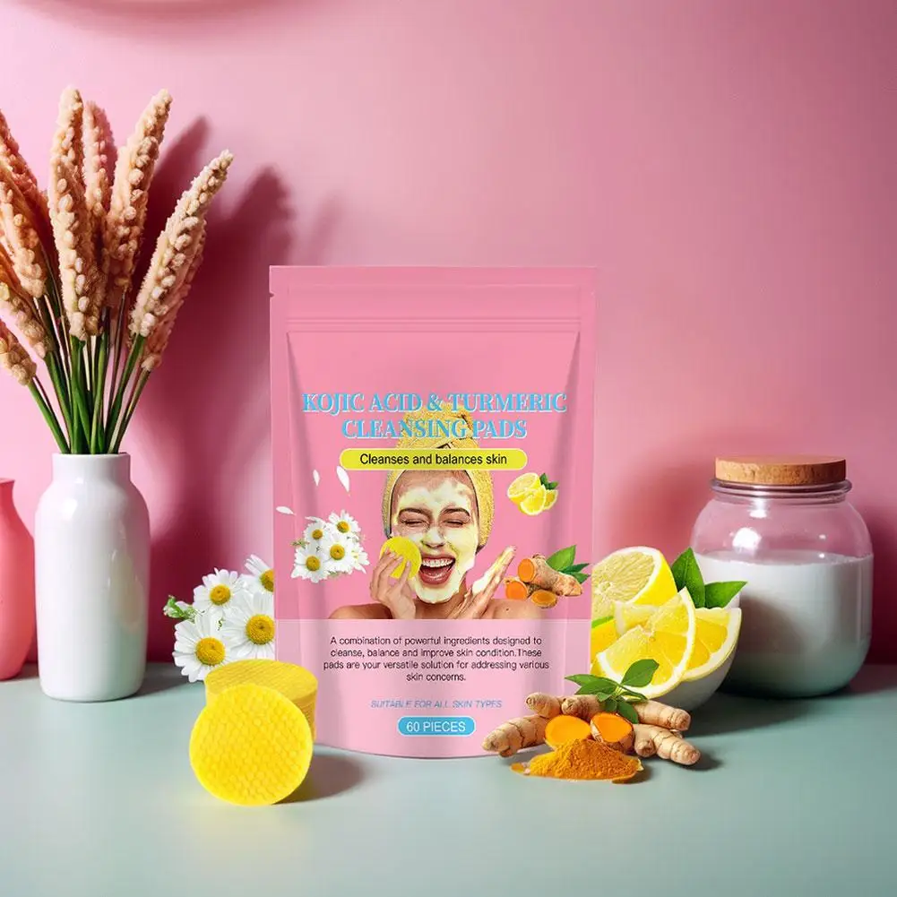 60pcs Turmeric Kojic Acid Cleansing Pads Exfoliating Pads Facial Sponges Deep Moisturizing Cleansing Gentle Natural Daily Skin C