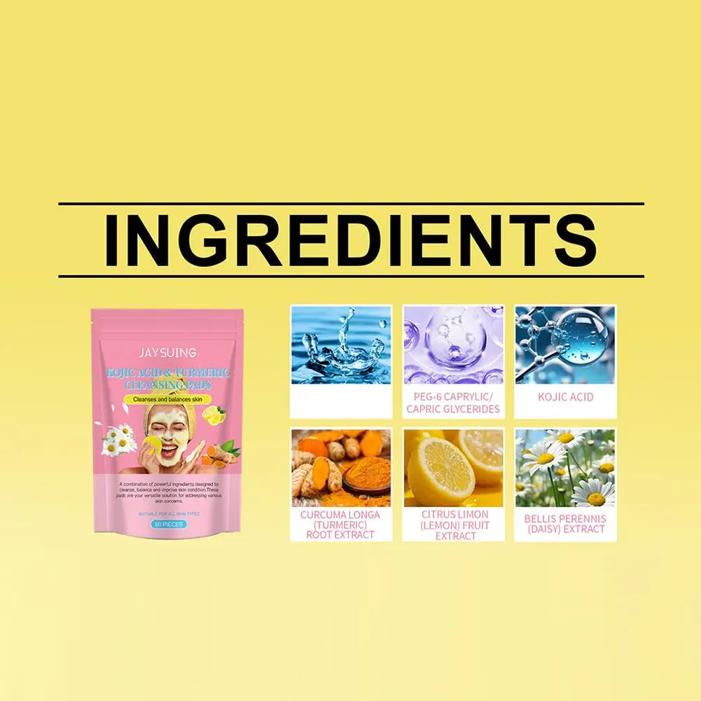Package includes: One pack of Kojic Acid Turmeric Cleansing Pads.