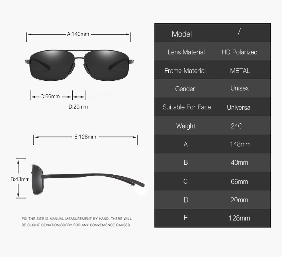 66-20 Men's Large Face Polarized Sunglasses Aluminum Magnesium Rectangular Glasses Driver Sunglasses Driving Glasses Have Degree
