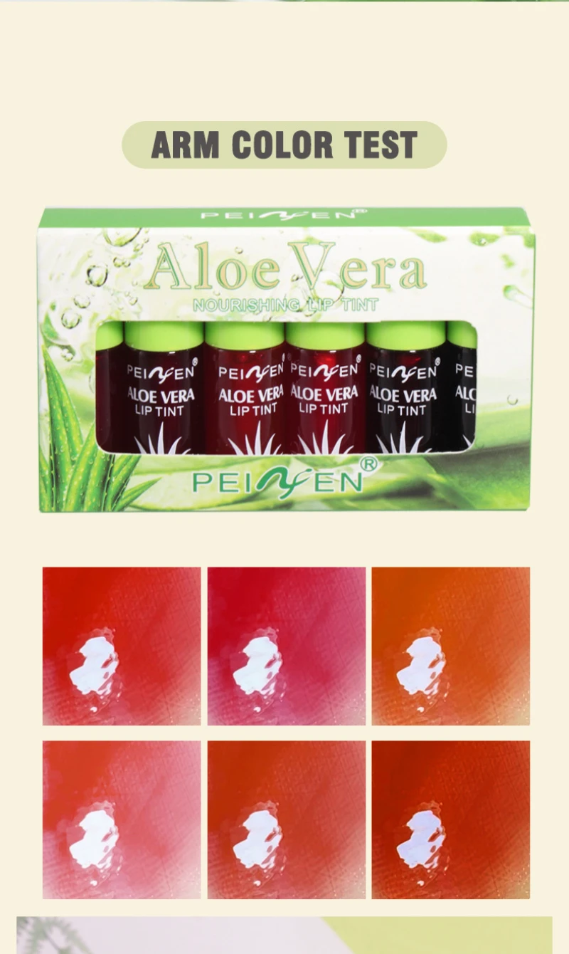 6Pcs Aloe Vera Lip Tinted Set,Hydrating&Moisturizing Lip Glaze Lipstick Makeup,Long-Lasting Lip Oil Lip Balm for Festival Gift