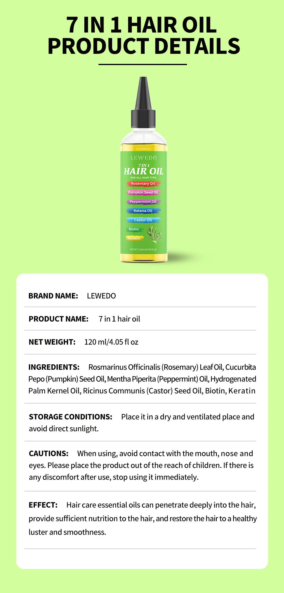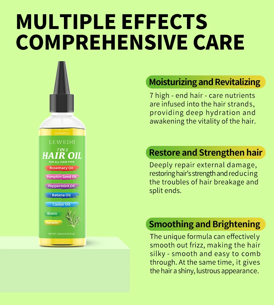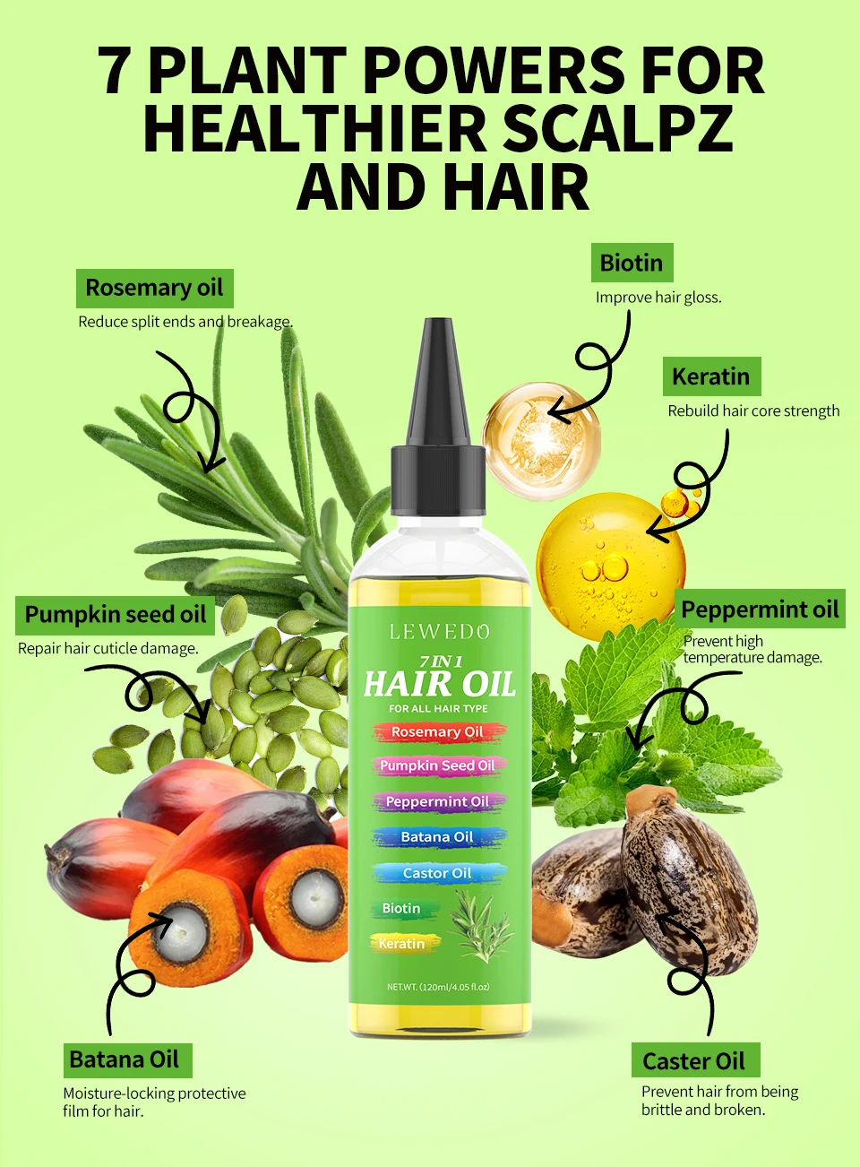 7 In 1 Hair Oil For All Hair Type Rosemary Batana Hair Growth Oil Keratin Biotin Castor Oil Hair Care Oil Beauty Health Product