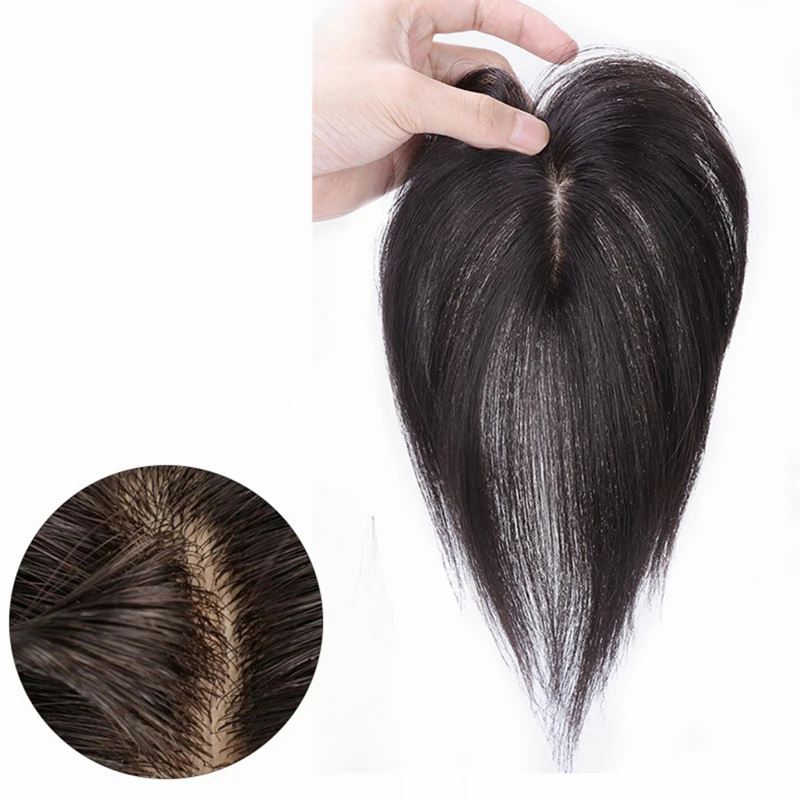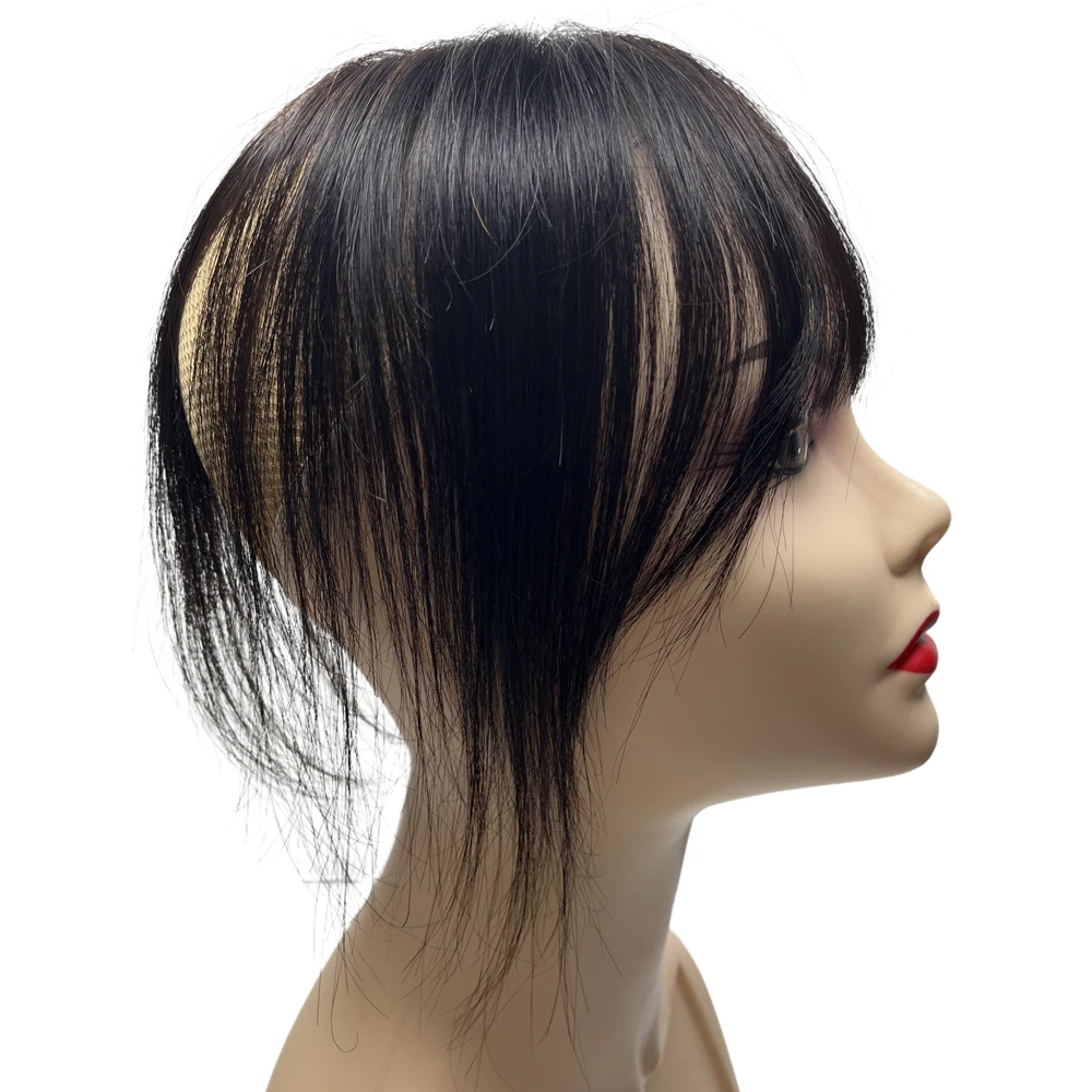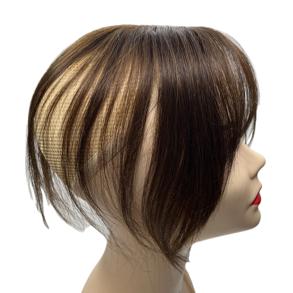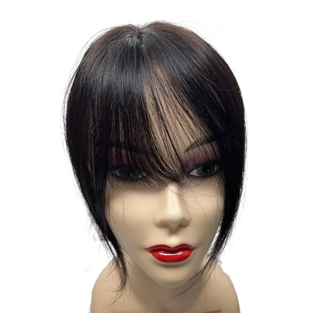 7x8cm Slik Base Human Hair Toppers For Women Clip In Topper With 3D Air Bangs Hairpieces for Hair Loss Volume Cover Grey Hair