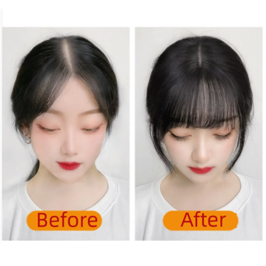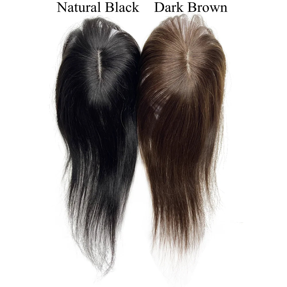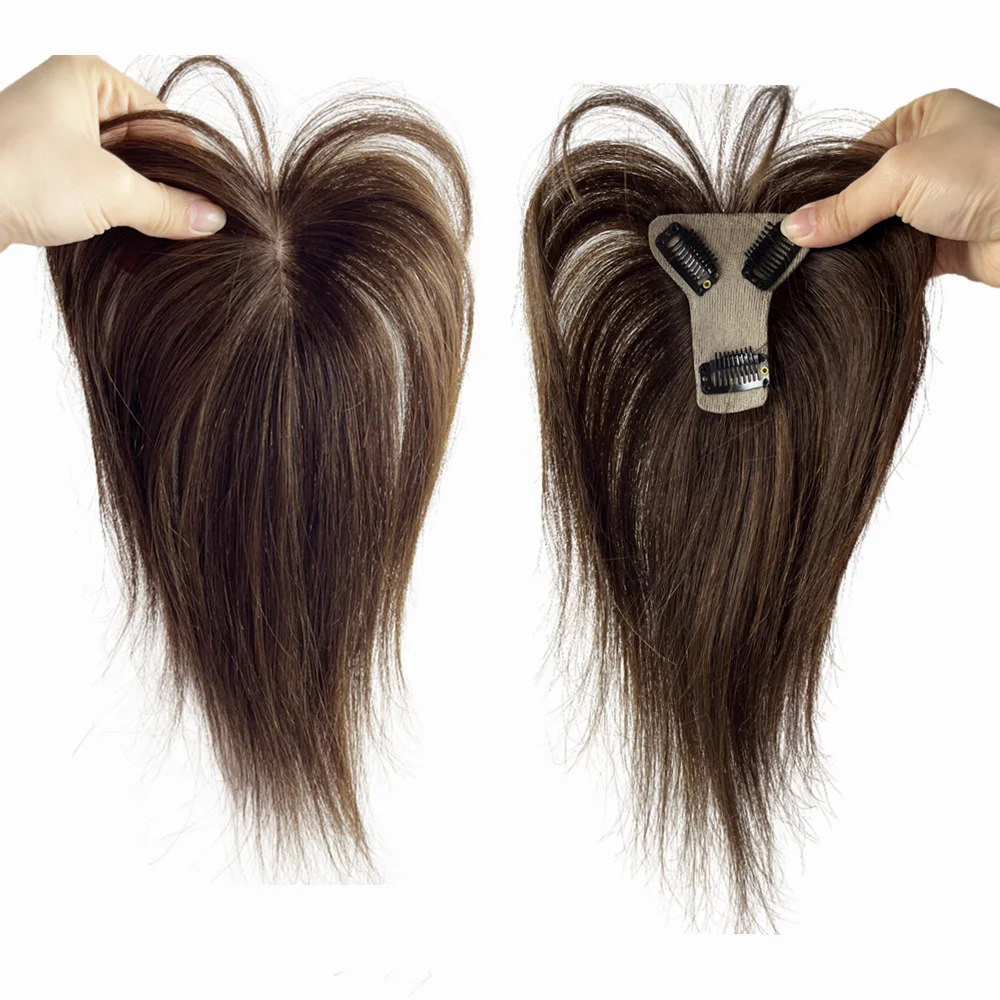 7x8cm Slik Base Human Hair Toppers For Women Clip In Topper With 3D Air Bangs Hairpieces for Hair Loss Volume Cover Grey Hair