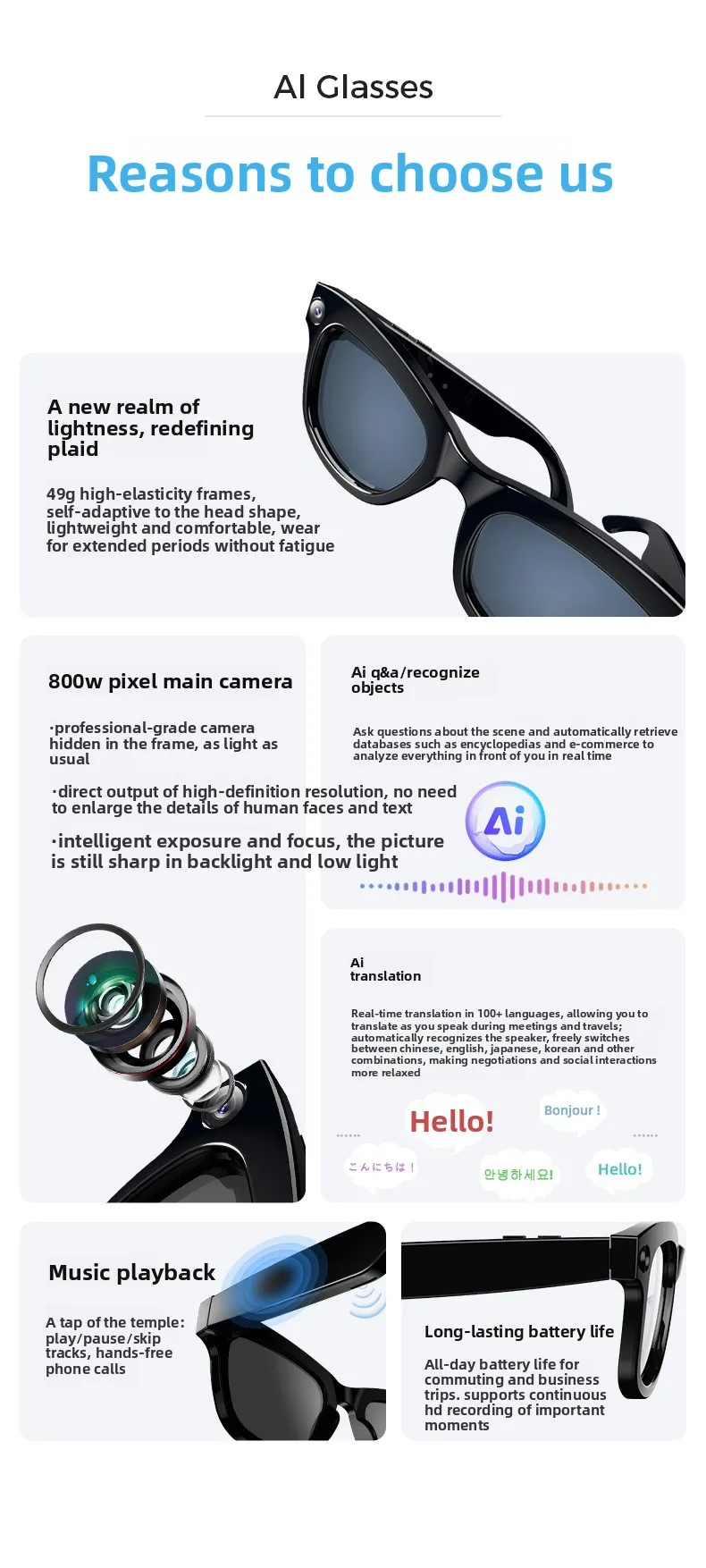 800W Pixel Sunglasses M01Pro AI Smart Intelligent Translation Glasses, Object Recognition Voice Assistant, Call Music